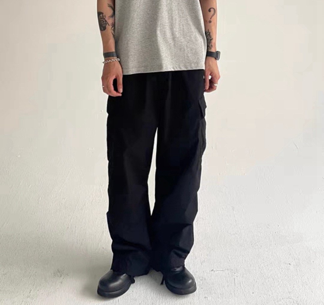 일본 스타일 복고풍 기본 낙하산 병 바위 바지 남자의 미국 스타일 유행 느슨한 캐주얼 바지 유행 브랜드 와이드 다리 바지