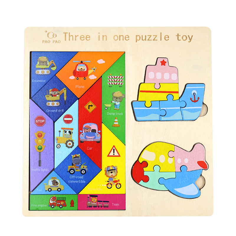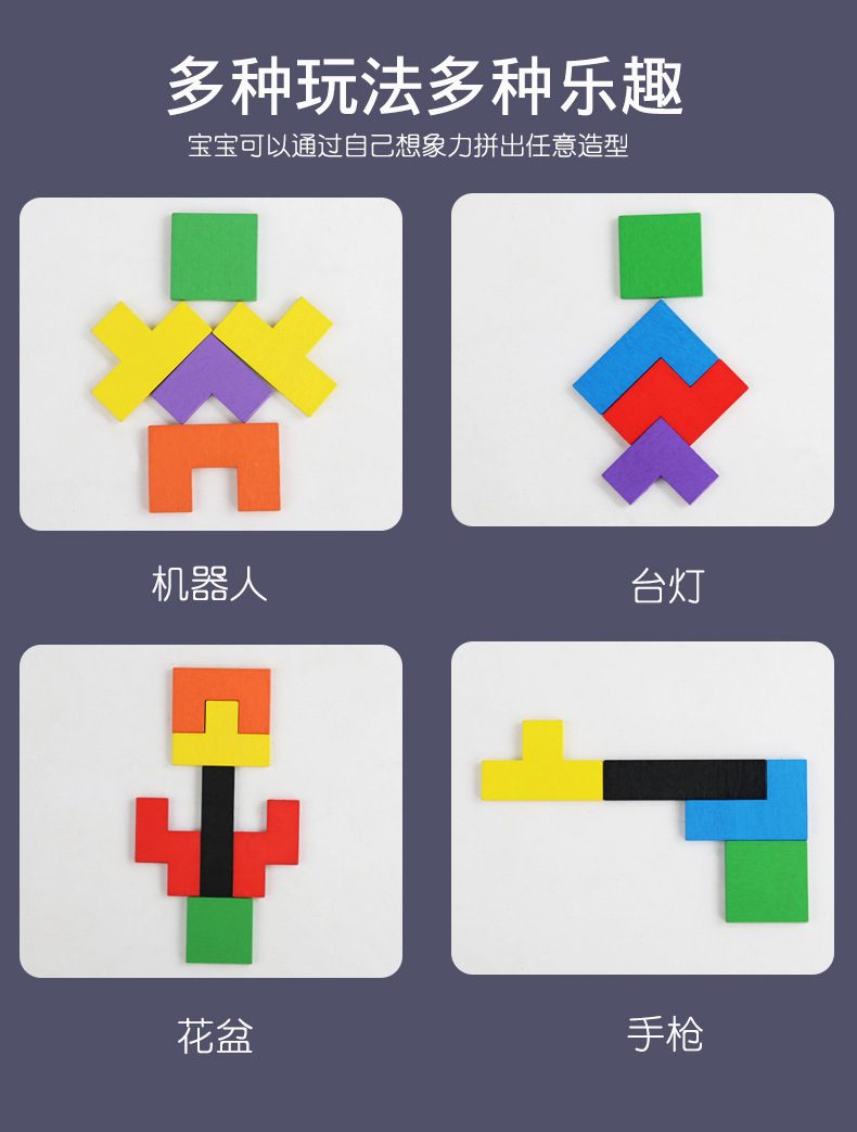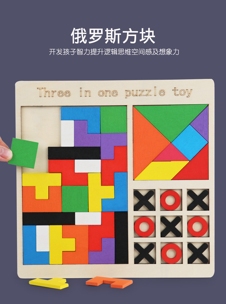 나무 어린이 퍼즐 테트리스 탱그램 게임 체스 3 대 1 퍼즐 빌딩 블록 조기 교육 장난감 빌딩 블록스토어 가기