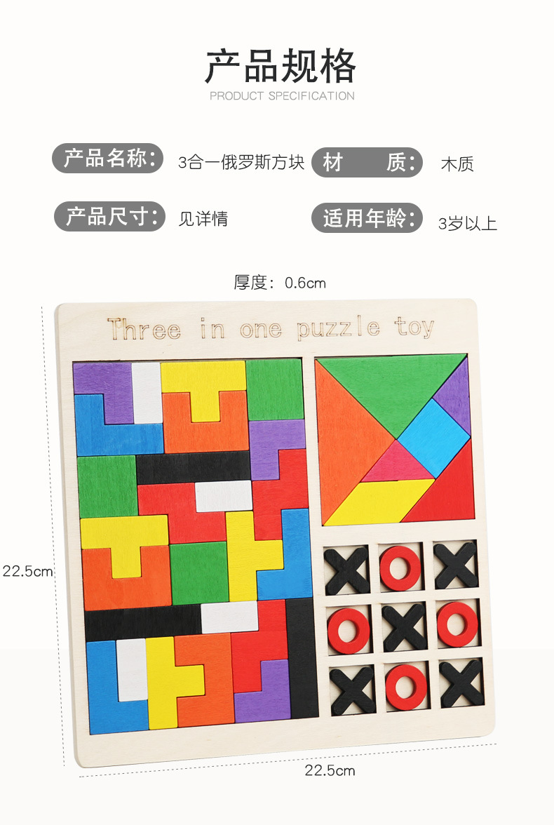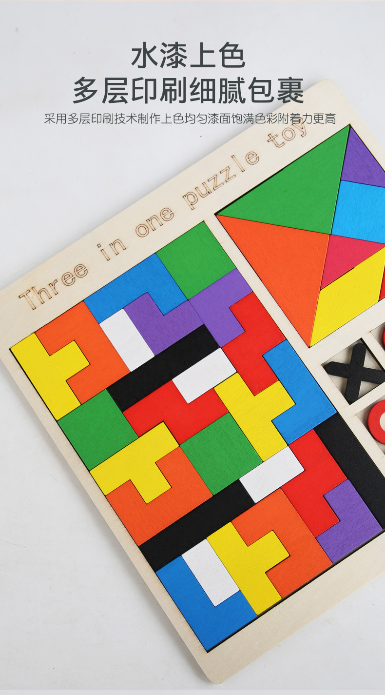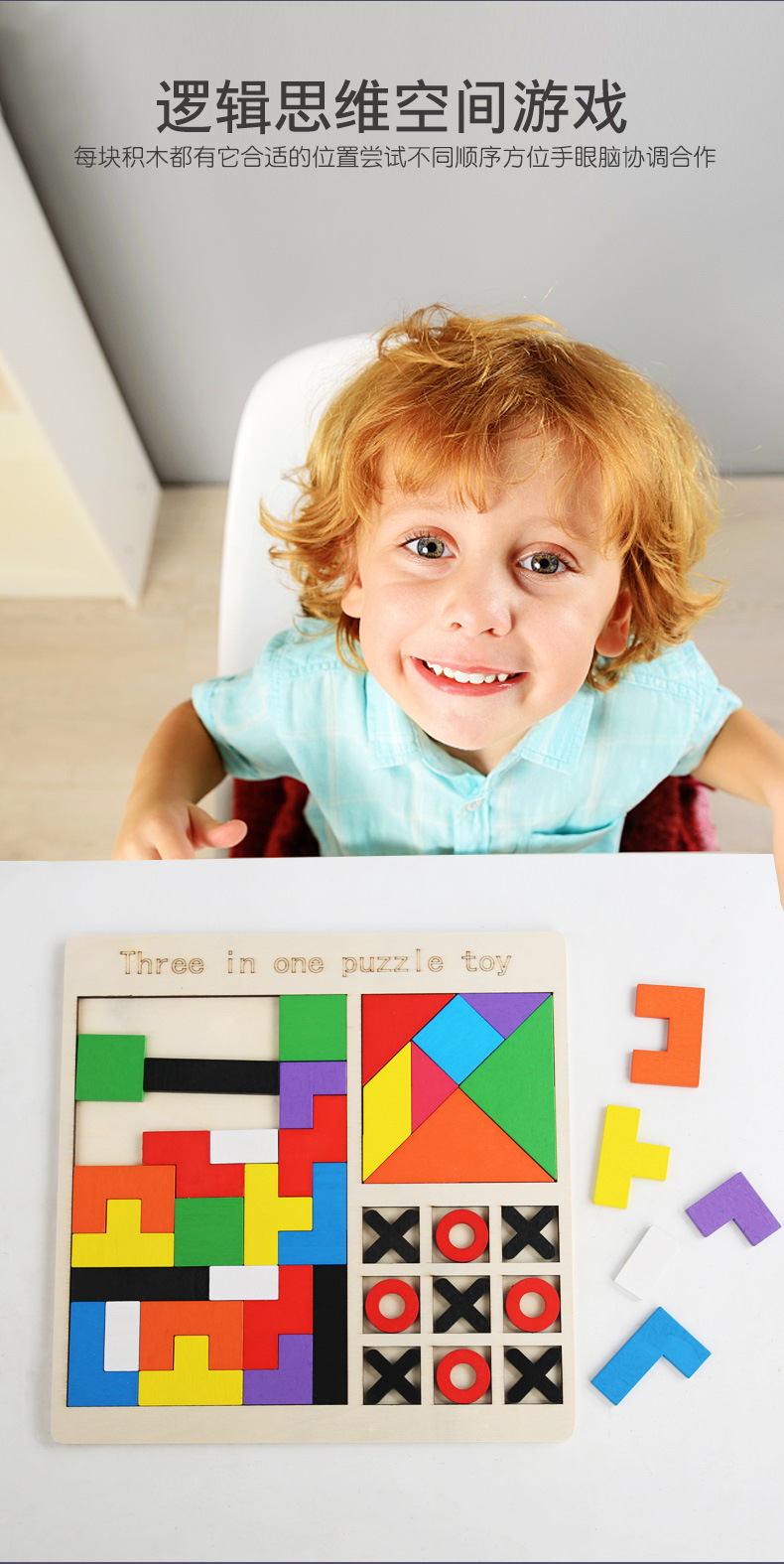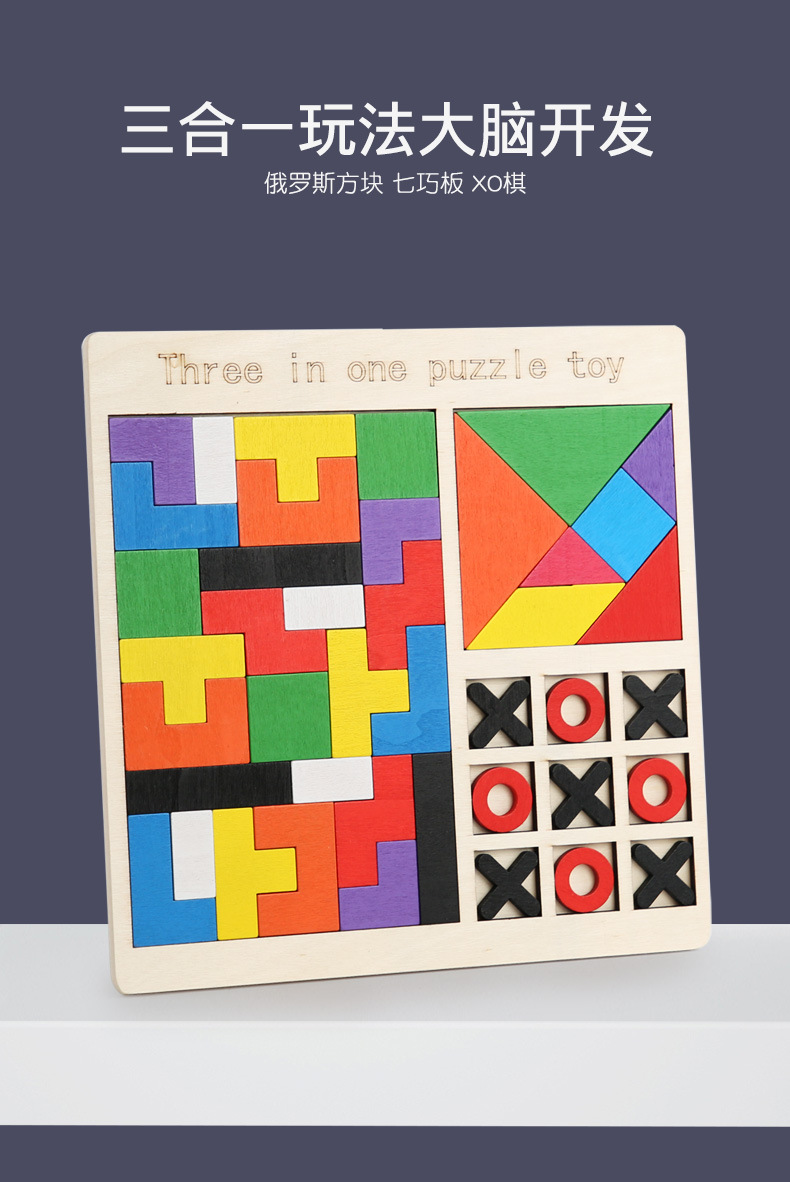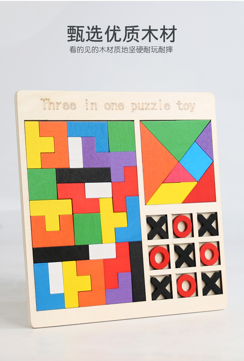 나무 어린이 퍼즐 테트리스 탱그램 게임 체스 3 대 1 퍼즐 빌딩 블록 조기 교육 장난감 빌딩 블록