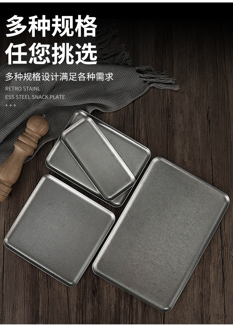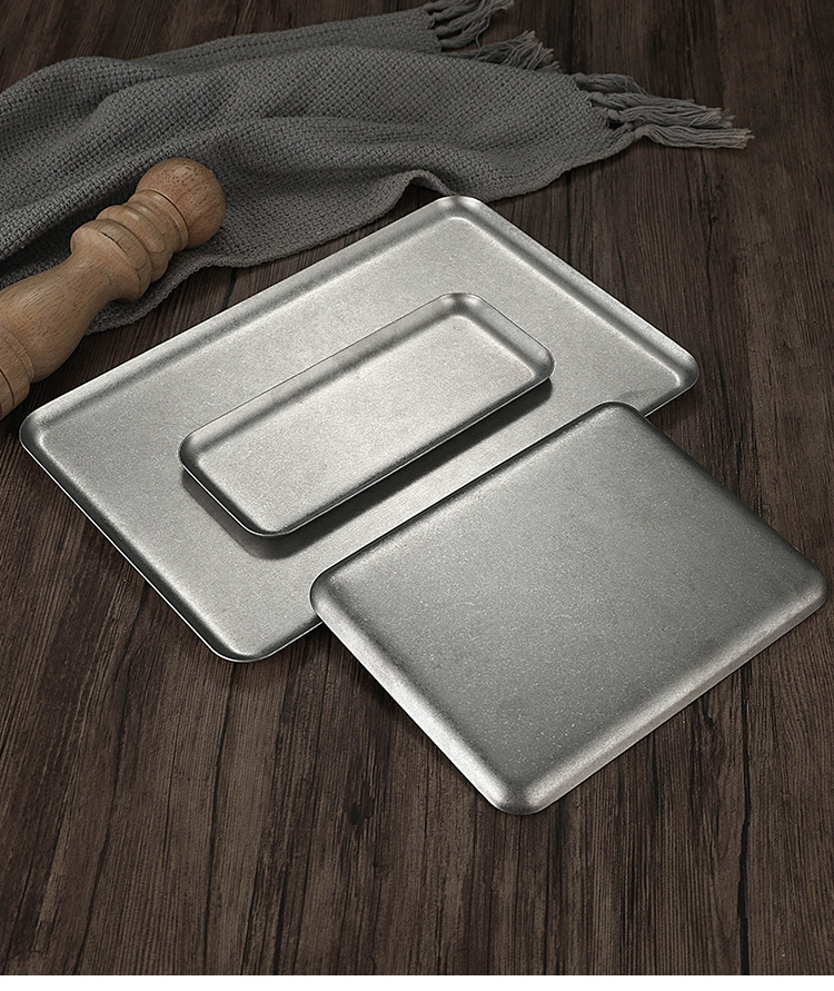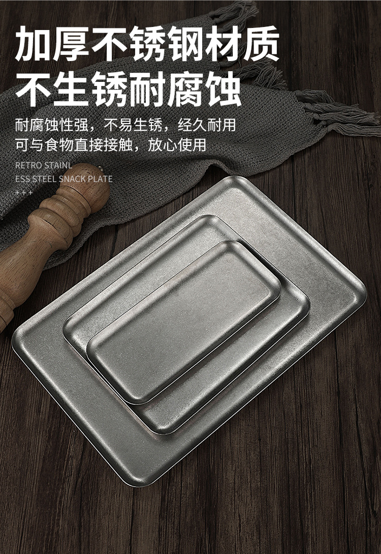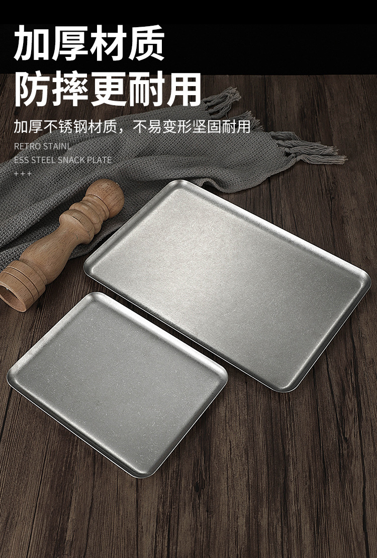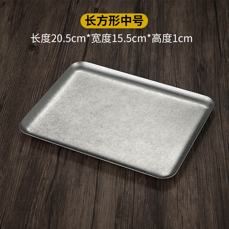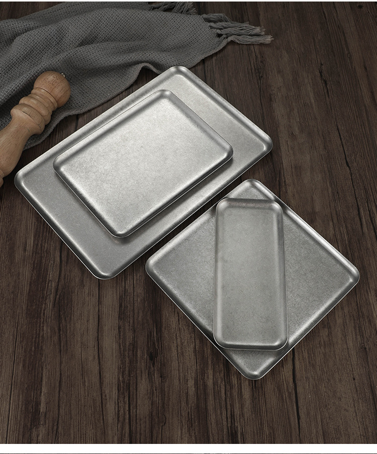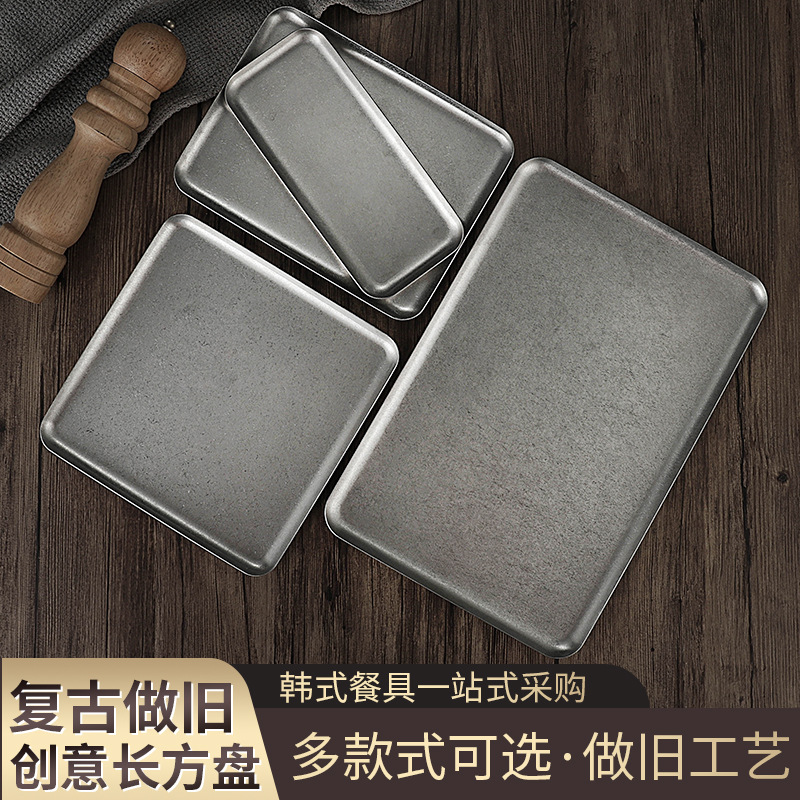 빈티지 한국식 스테인레스 스틸 직사각형 카페 트레이 딤섬 케이크 플레이트 상업용 바베큐 플레이트 플랫 플레이트스토어 가기