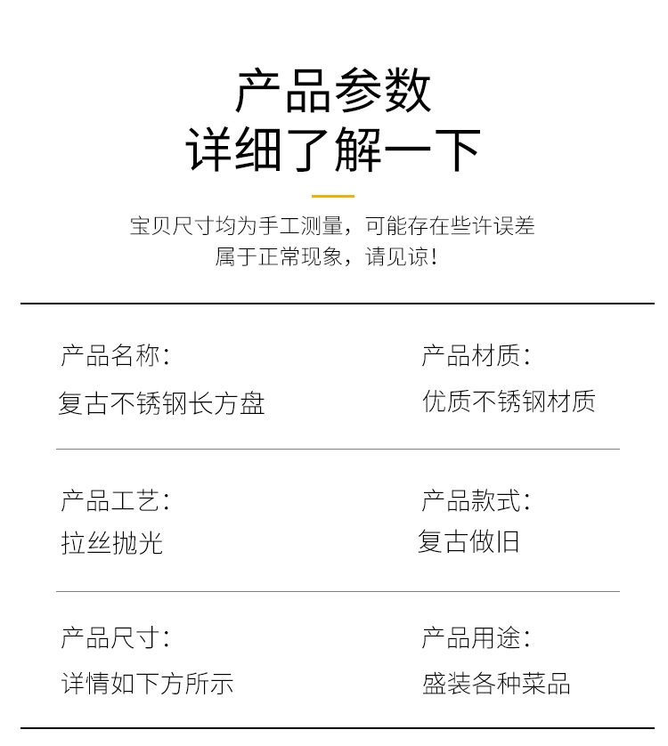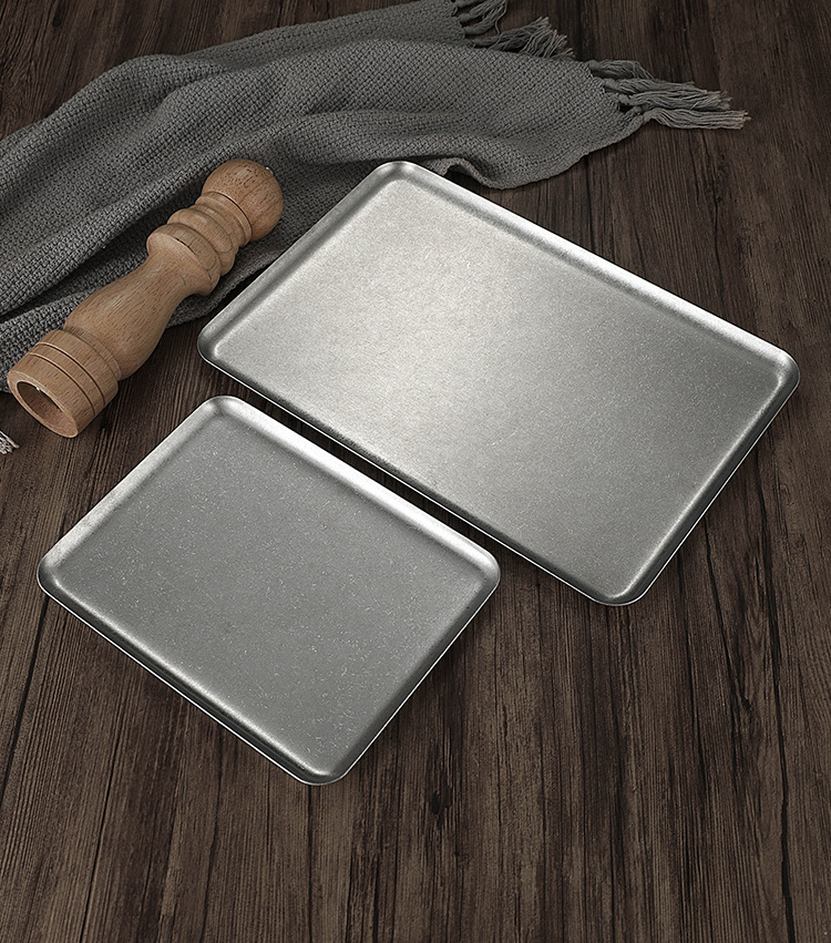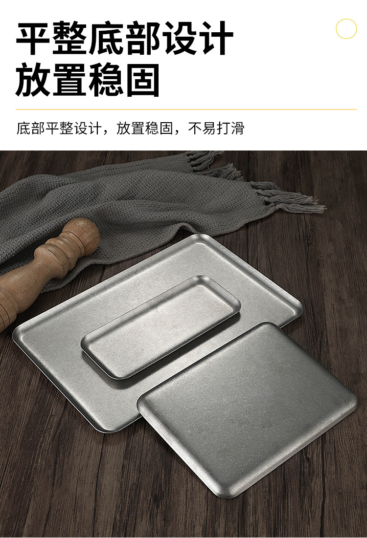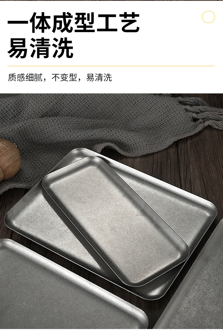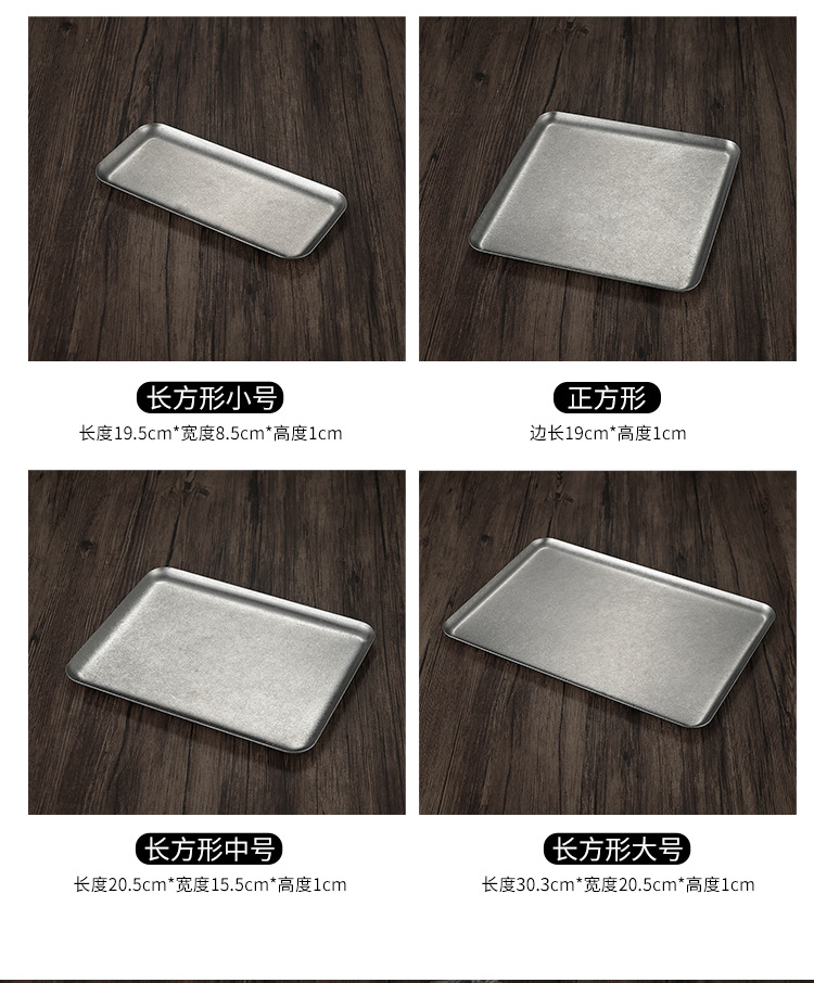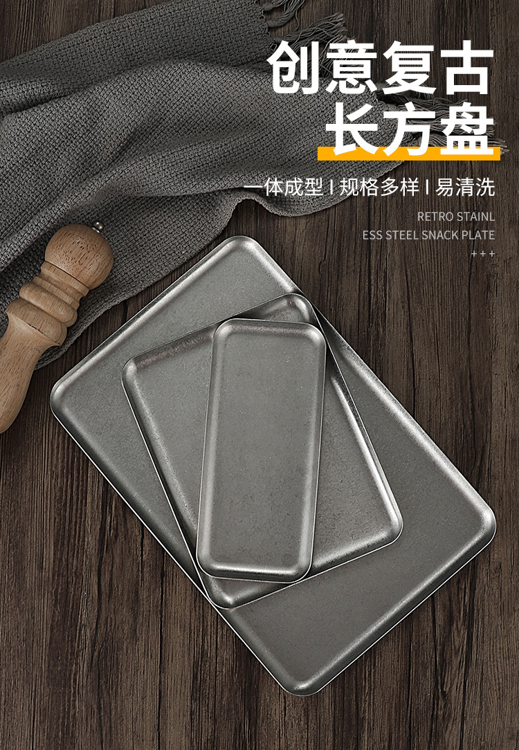 빈티지 한국식 스테인레스 스틸 직사각형 카페 트레이 딤섬 케이크 플레이트 상업용 바베큐 플레이트 플랫 플레이트스토어 가기