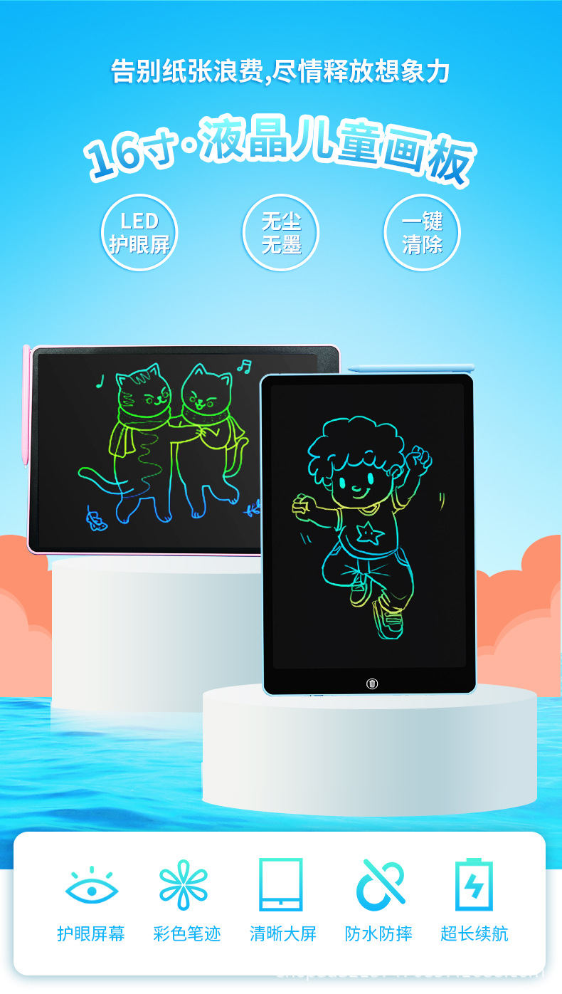 16 인치 LCD 소형 칠판 대형 스크린 컬러 전자 손그림 판 어린이 그림 판 대회 전자 초안 보드스토어 가기