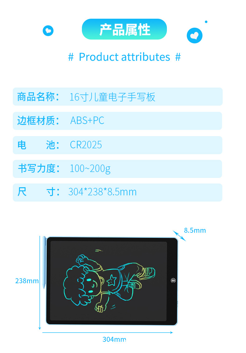 16 인치 LCD 소형 칠판 대형 스크린 컬러 전자 손그림 판 어린이 그림 판 대회 전자 초안 보드