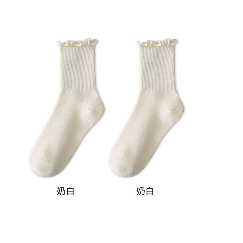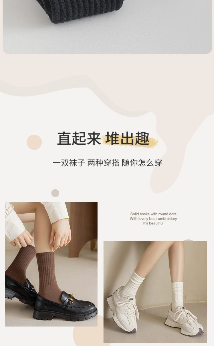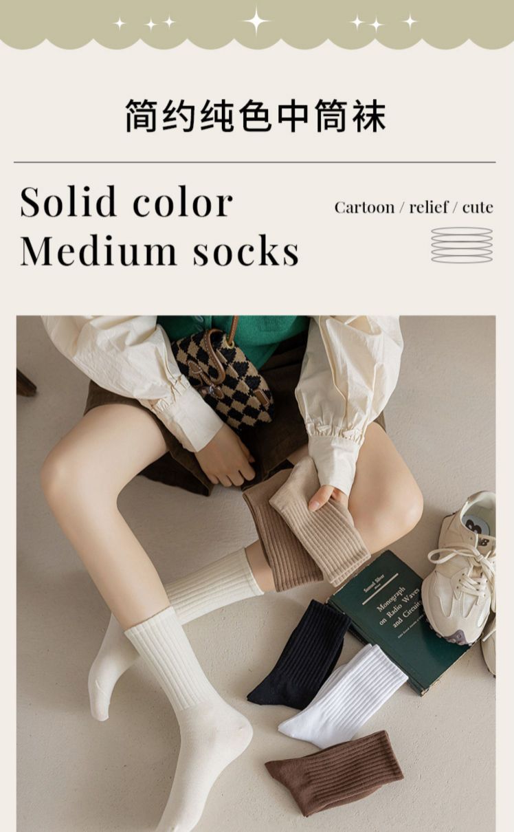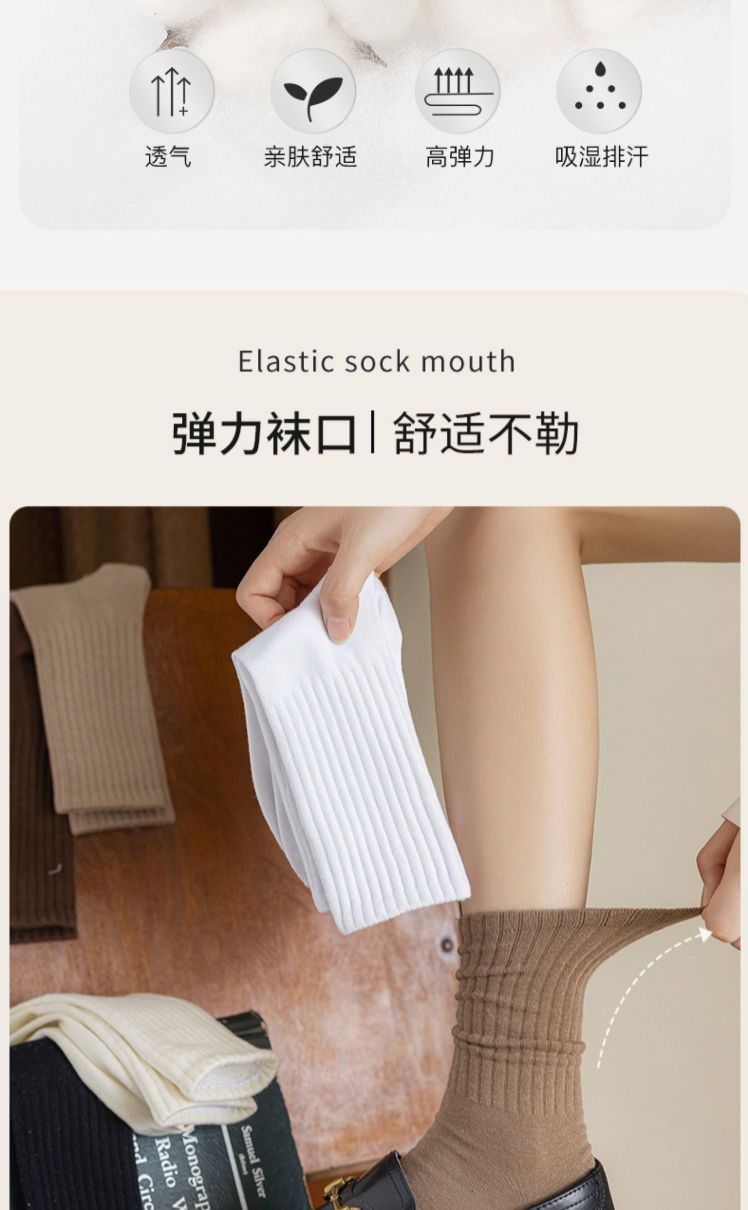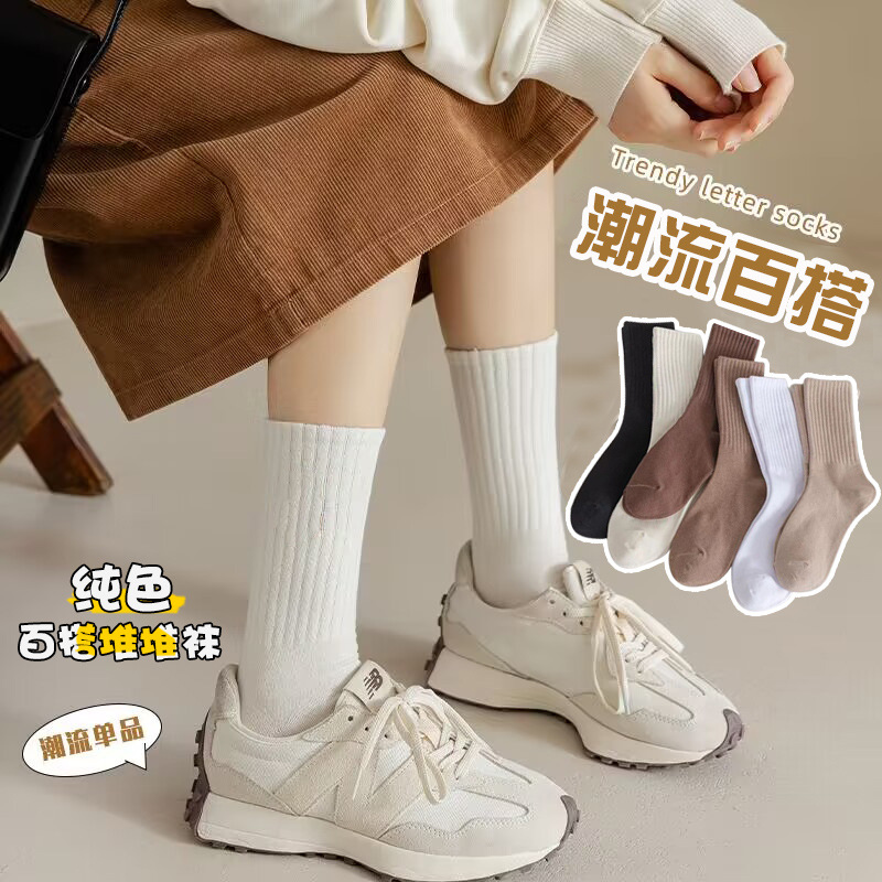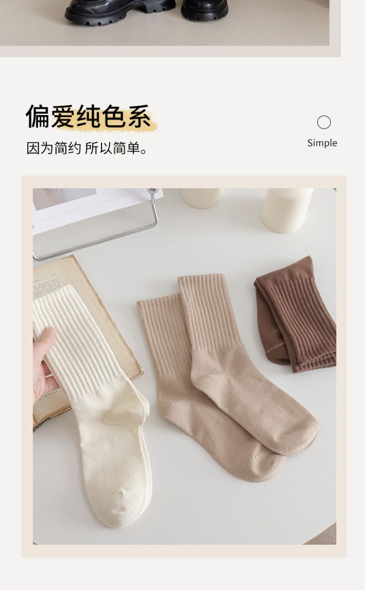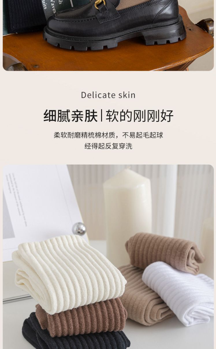 Zhuji 양말 여성 가을, 겨울 세로 줄무늬 솔리드 컬러 미드 튜브 양말 ins 트렌디 한 다목적 파일 양말 학생 스포츠 스타킹