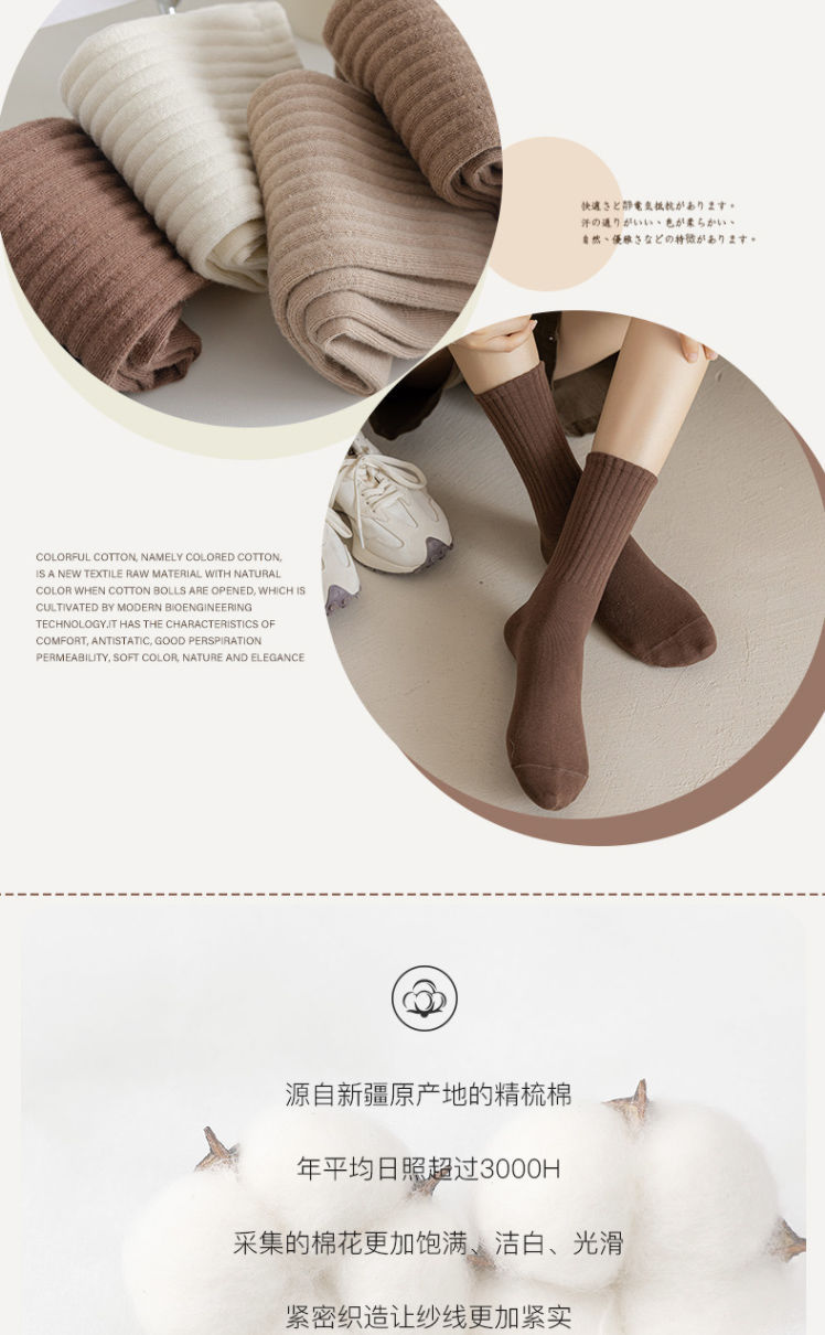Zhuji 양말 여성 가을, 겨울 세로 줄무늬 솔리드 컬러 미드 튜브 양말 ins 트렌디 한 다목적 파일 양말 학생 스포츠 스타킹스토어 가기