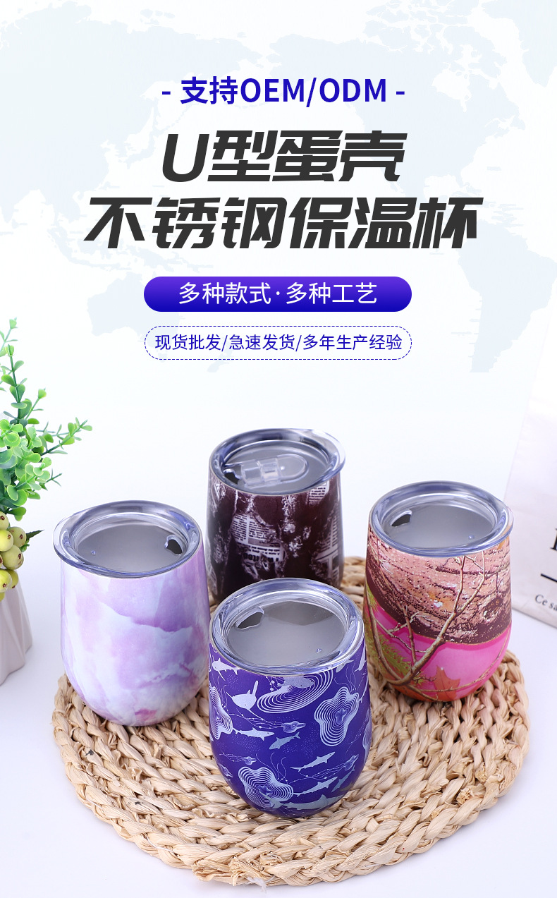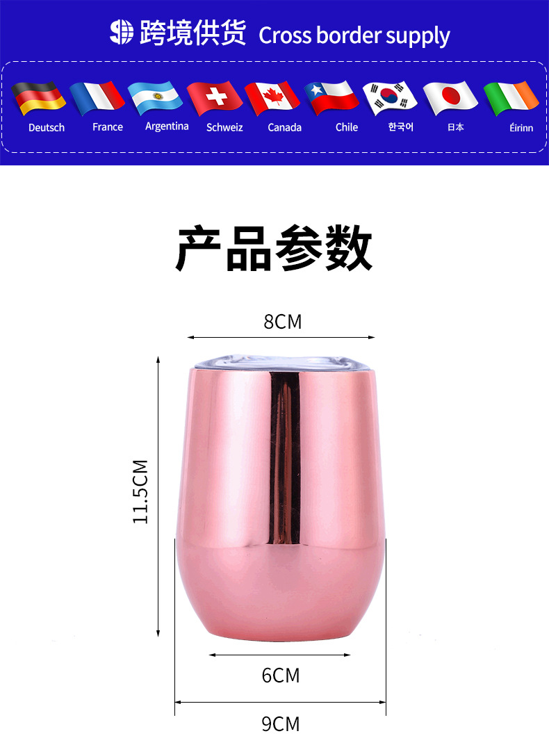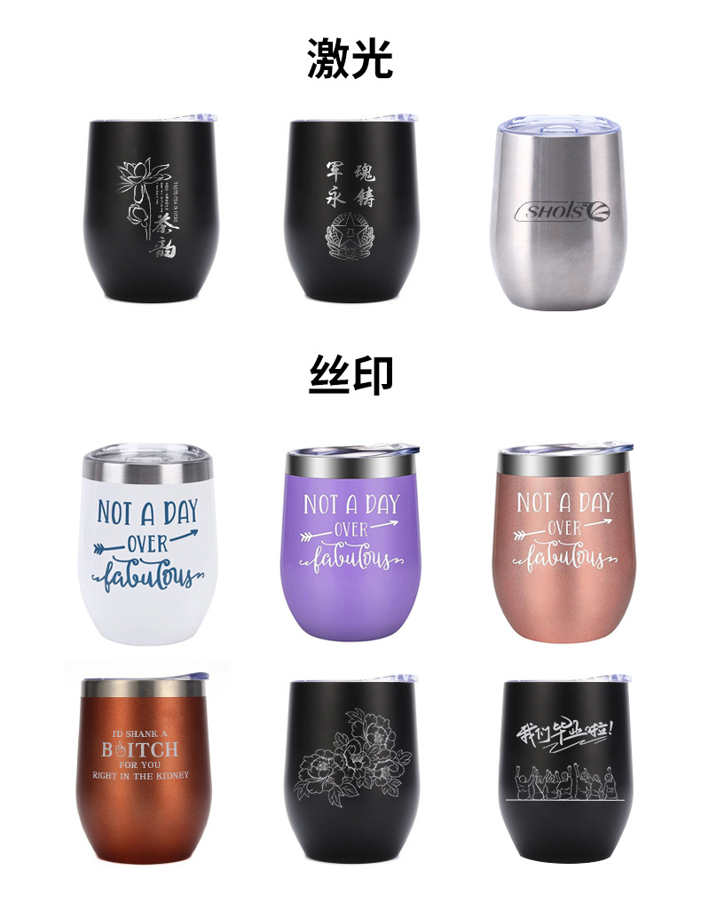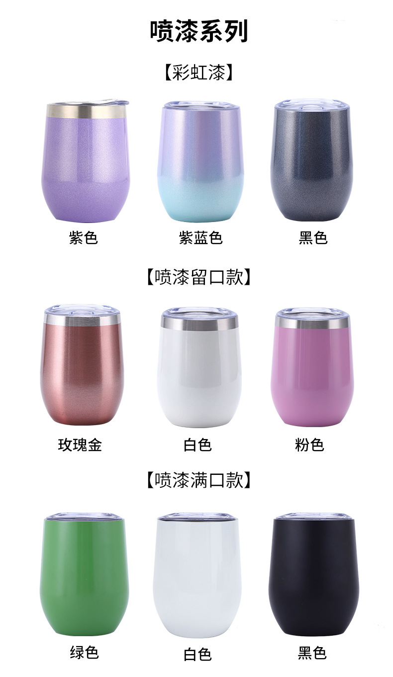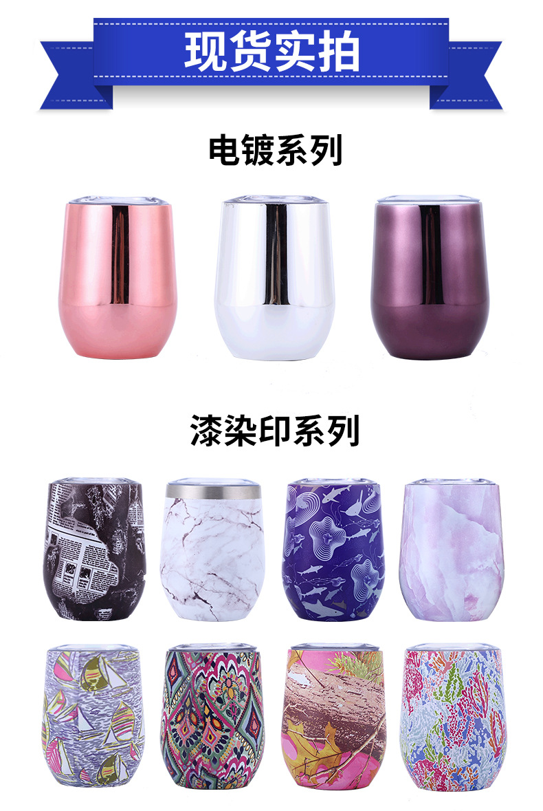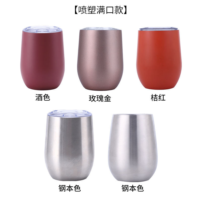 대외 무역을위한 국경 특별 12oz 계란 컵 304 더블 레이어 스테인레스 스틸 진공 달걀 껍질 보온병 레드 와인 컵스토어 가기