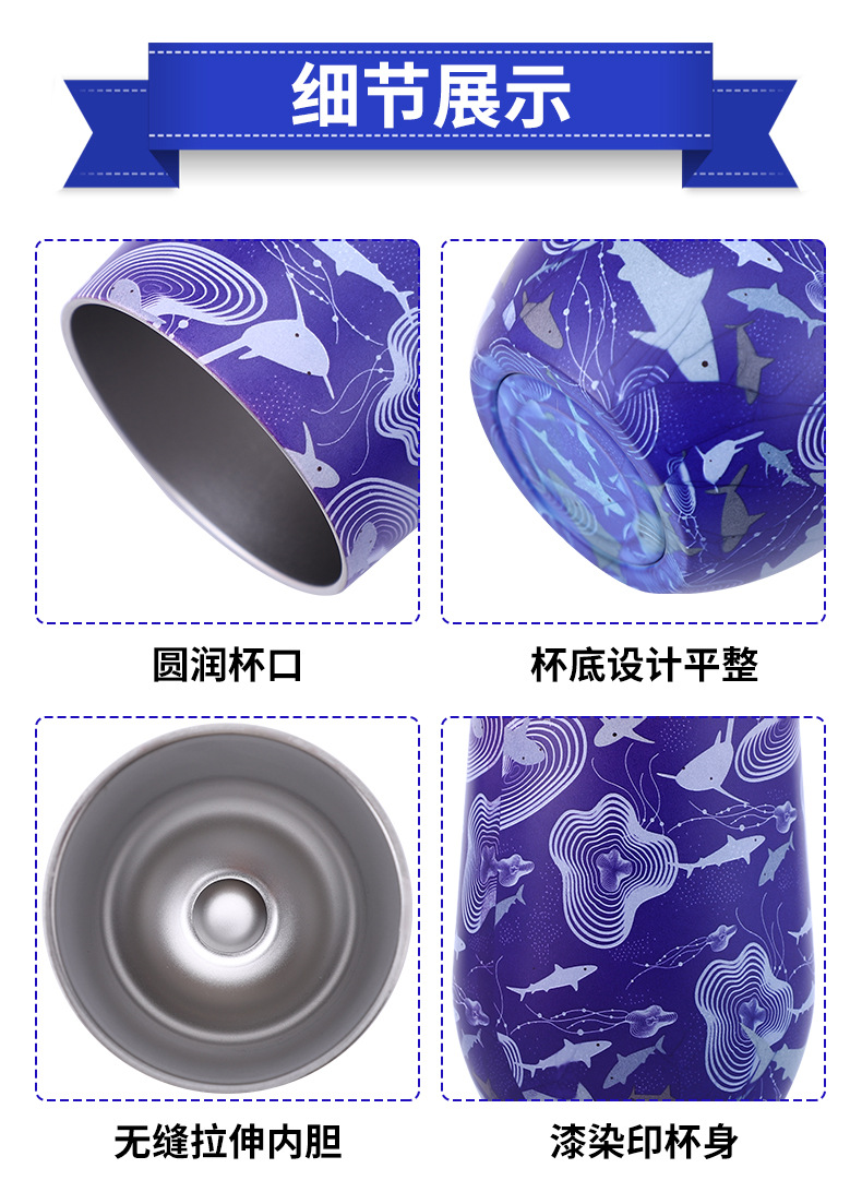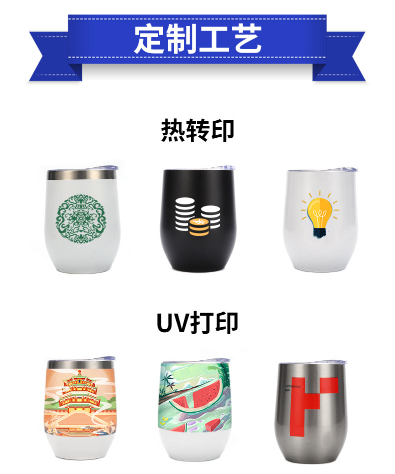 대외 무역을위한 국경 특별 12oz 계란 컵 304 더블 레이어 스테인레스 스틸 진공 달걀 껍질 보온병 레드 와인 컵