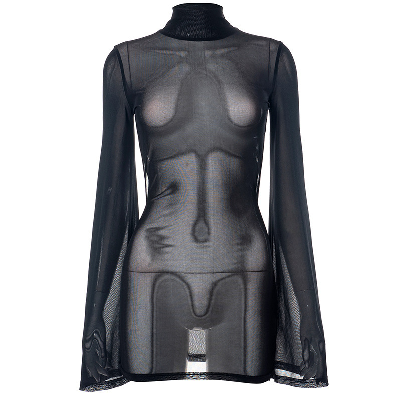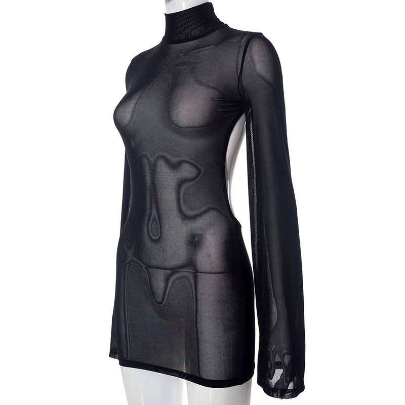대외 무역 국경 패션 여름 새로운 여성의 등이없는 메쉬 혼 소매 짧은 섹시한 소녀 엉덩이 원피스스토어 가기