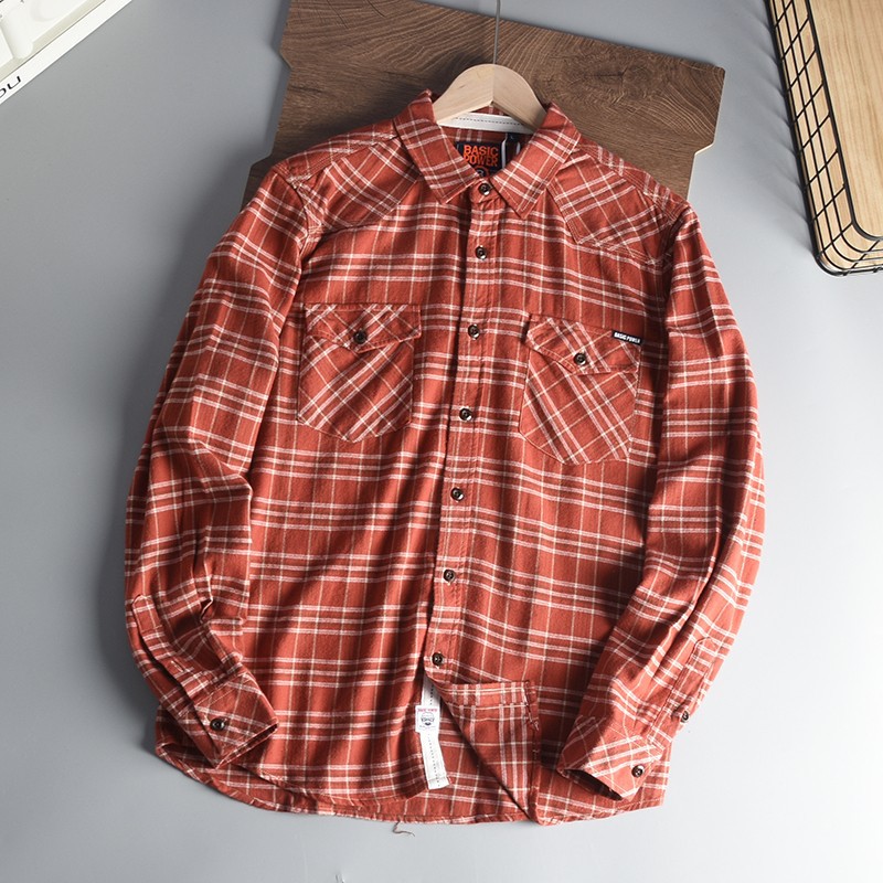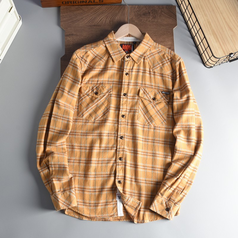 수출 오래된 미국 Ami Khaji 일본 빈티지 격자 무늬 샌딩 긴팔 셔츠 남성 대외 무역 꼬리 목록 정품스토어 가기