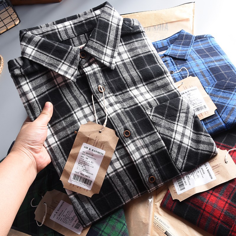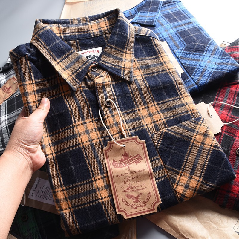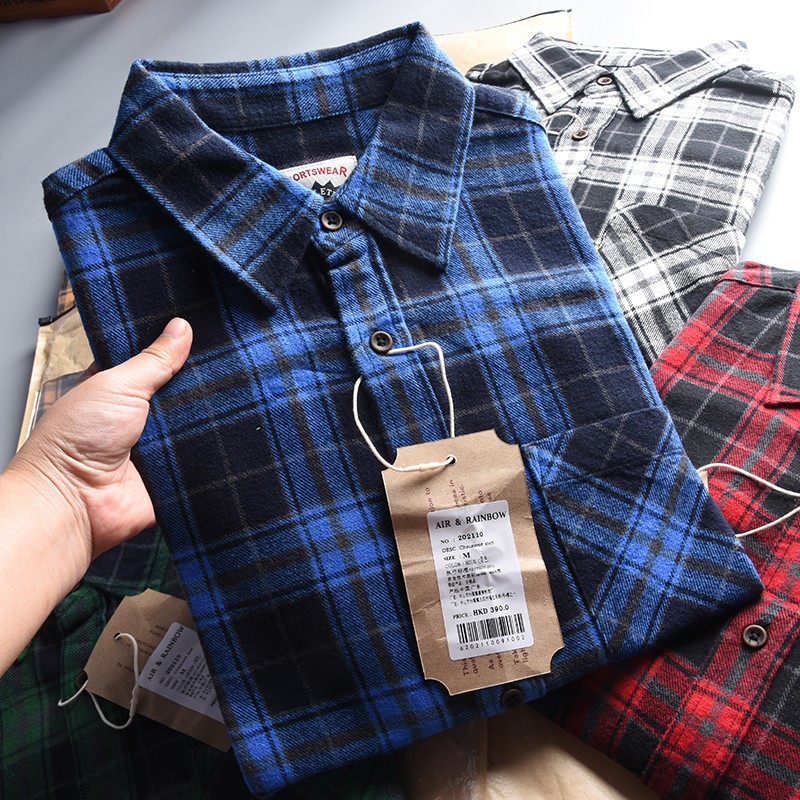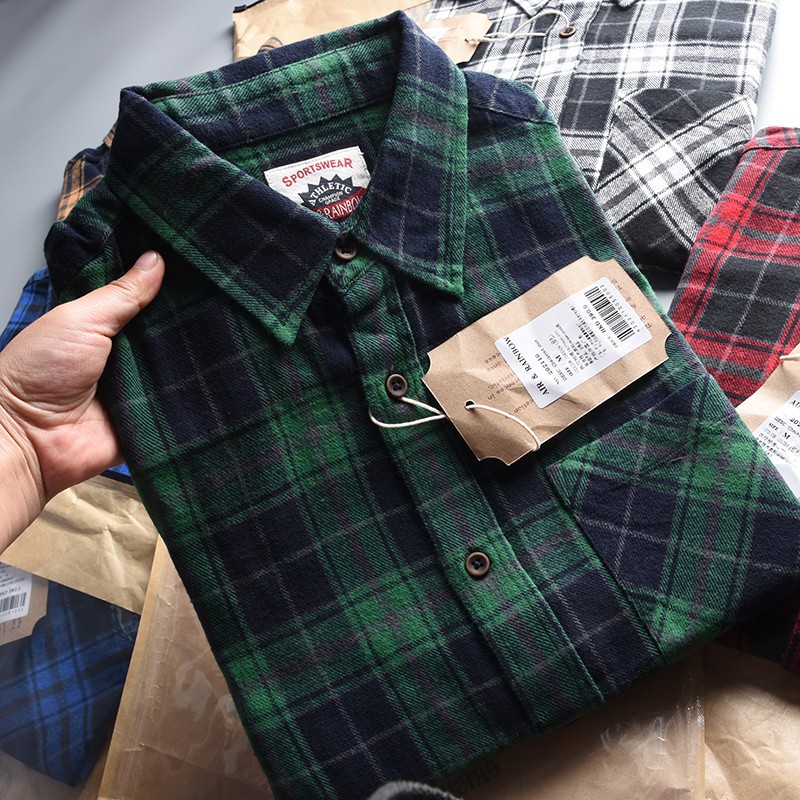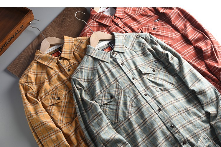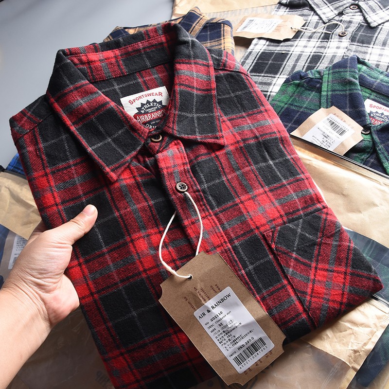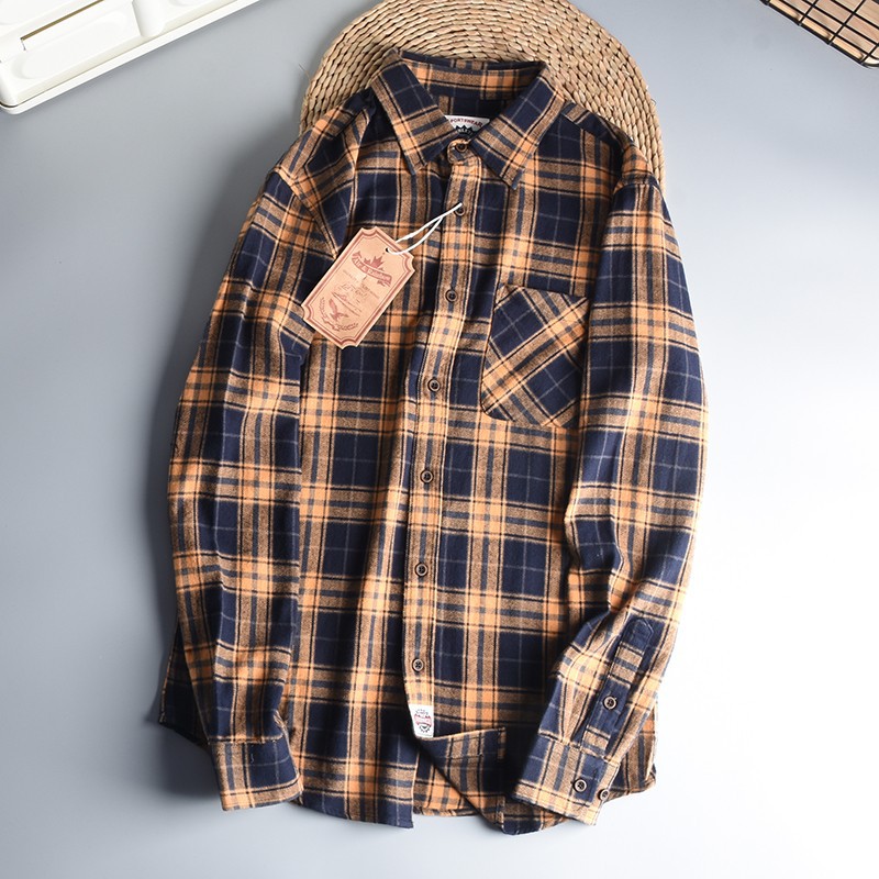 수출 오래된 미국 Ami Khaji 일본 빈티지 격자 무늬 샌딩 긴팔 셔츠 남성 대외 무역 꼬리 목록 정품