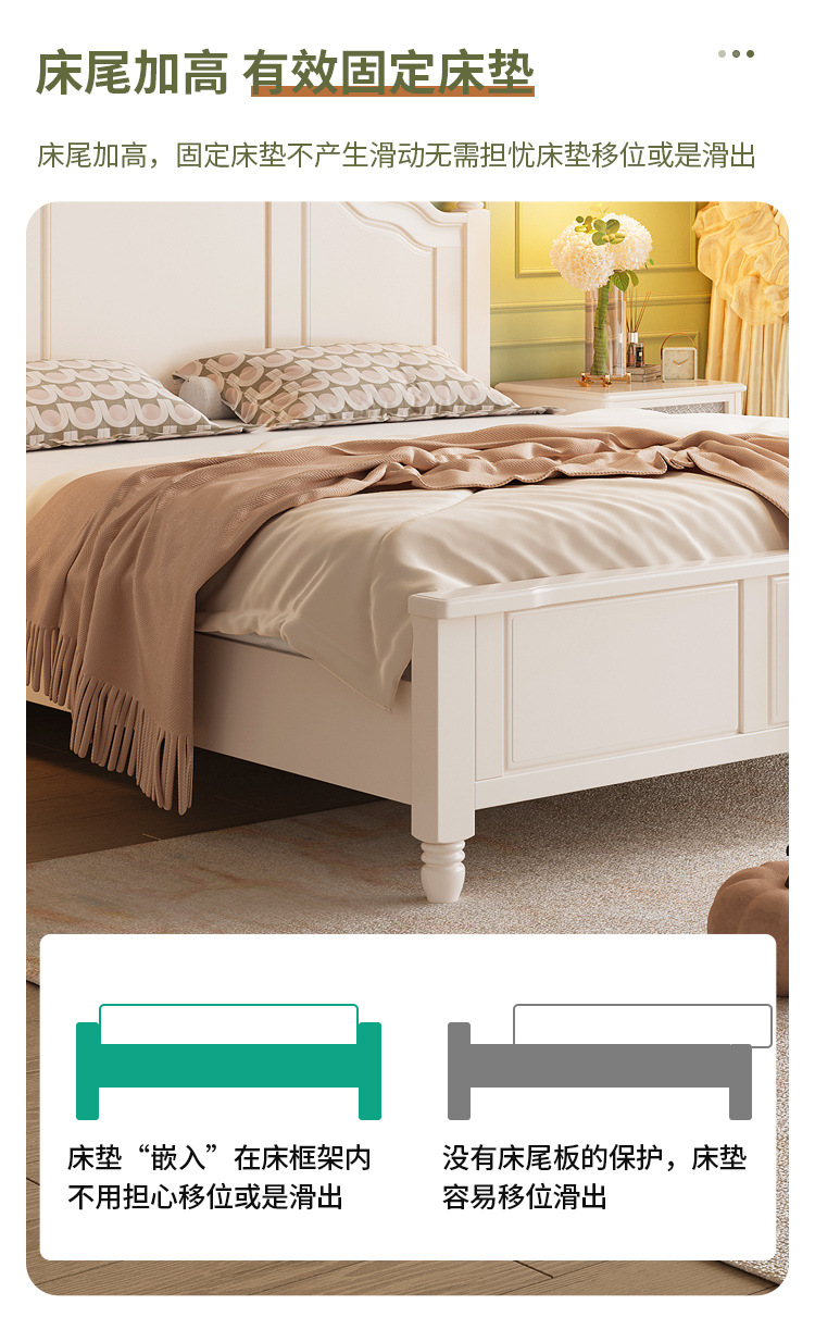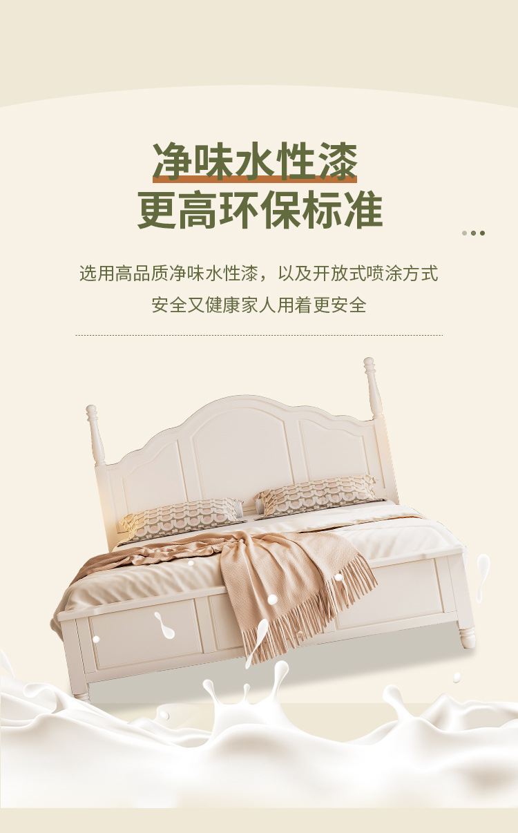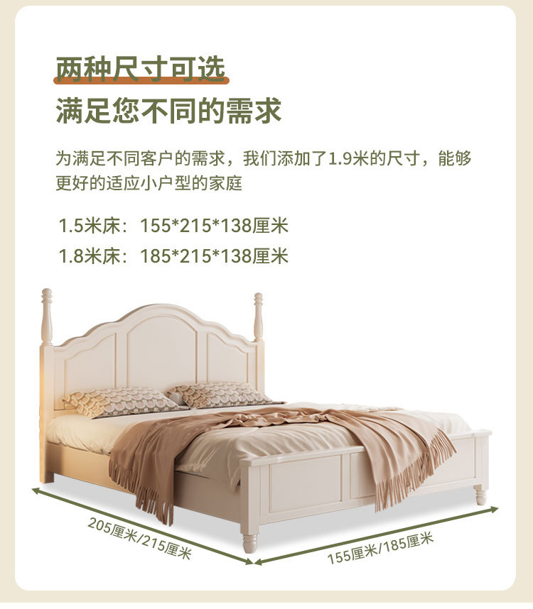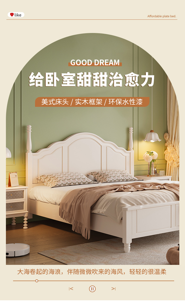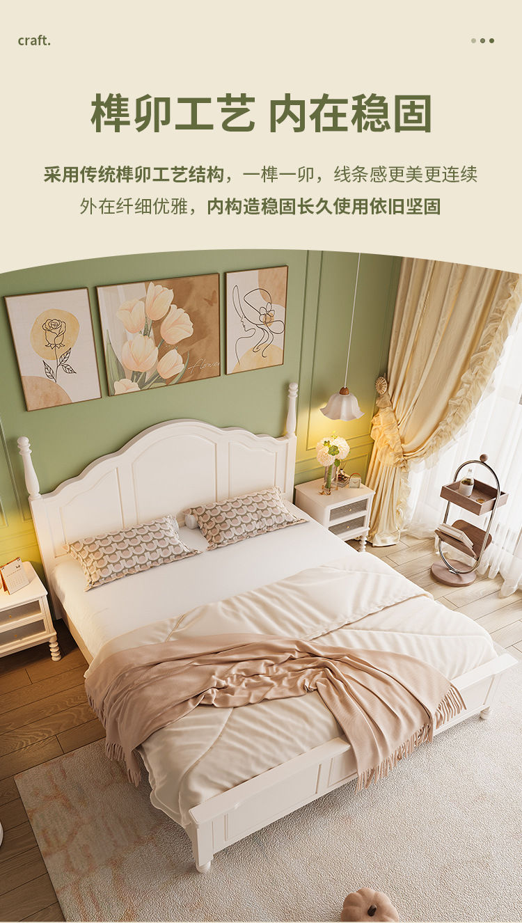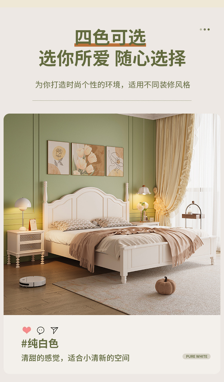 프랑스 크림 스타일 단단한 나무 침대 간단한 현대 1 M 8 큰 침대 프레임 1.5m 소녀 침실 화이트 미국 공주 침대스토어 가기
