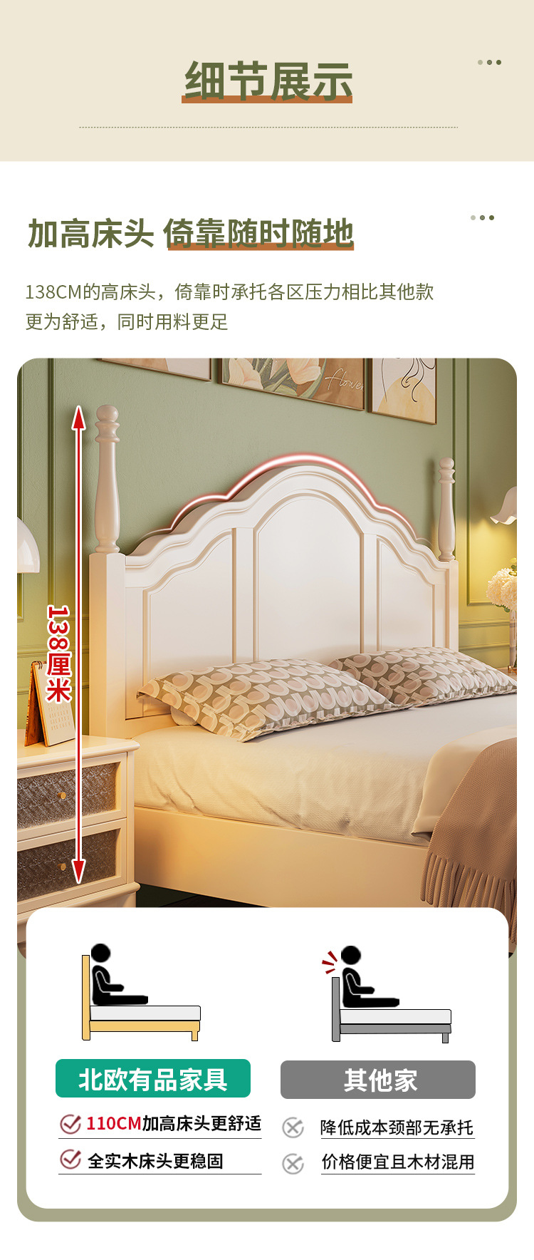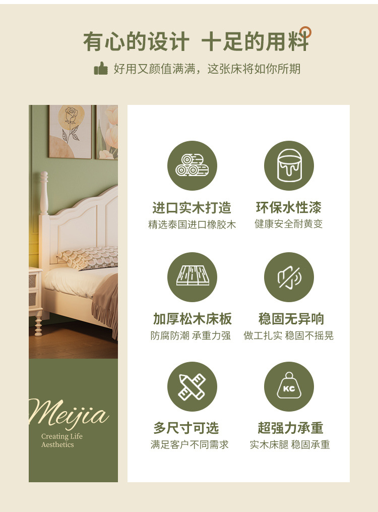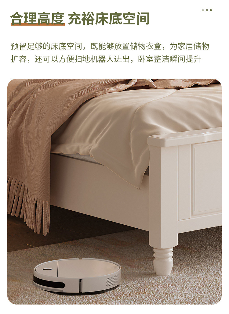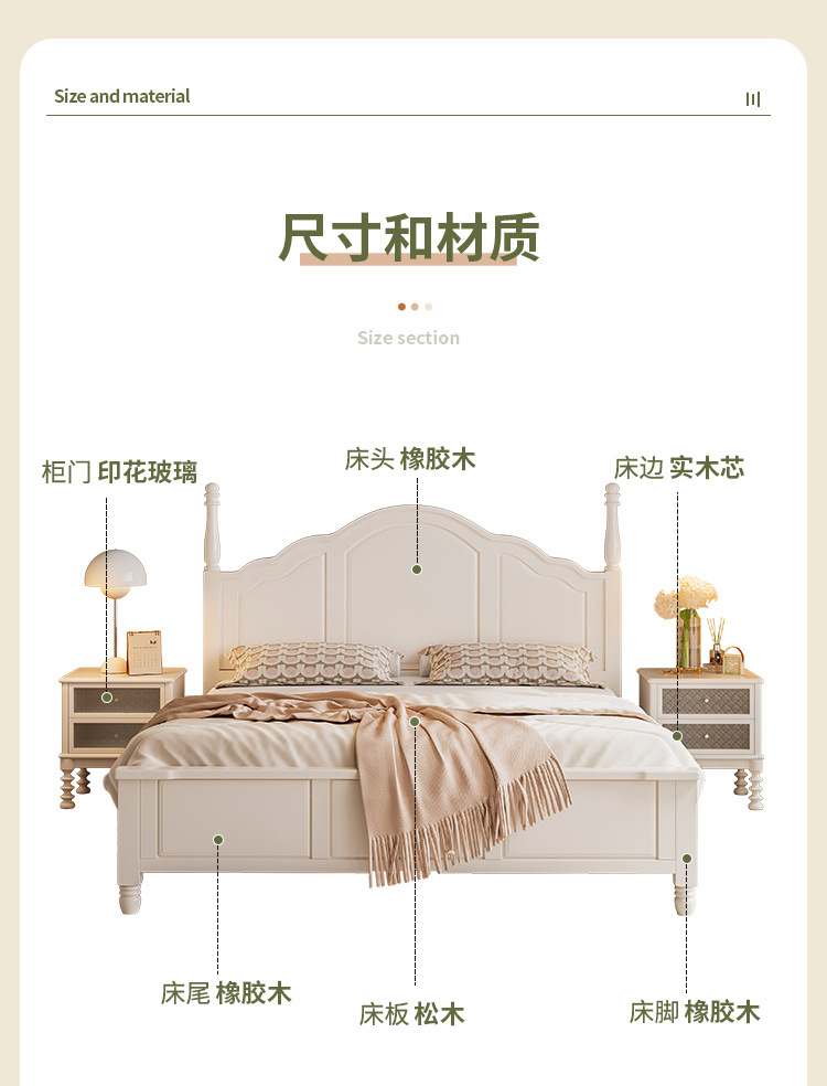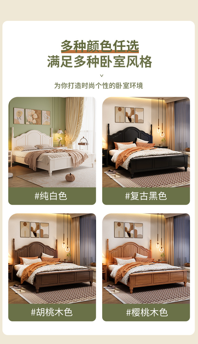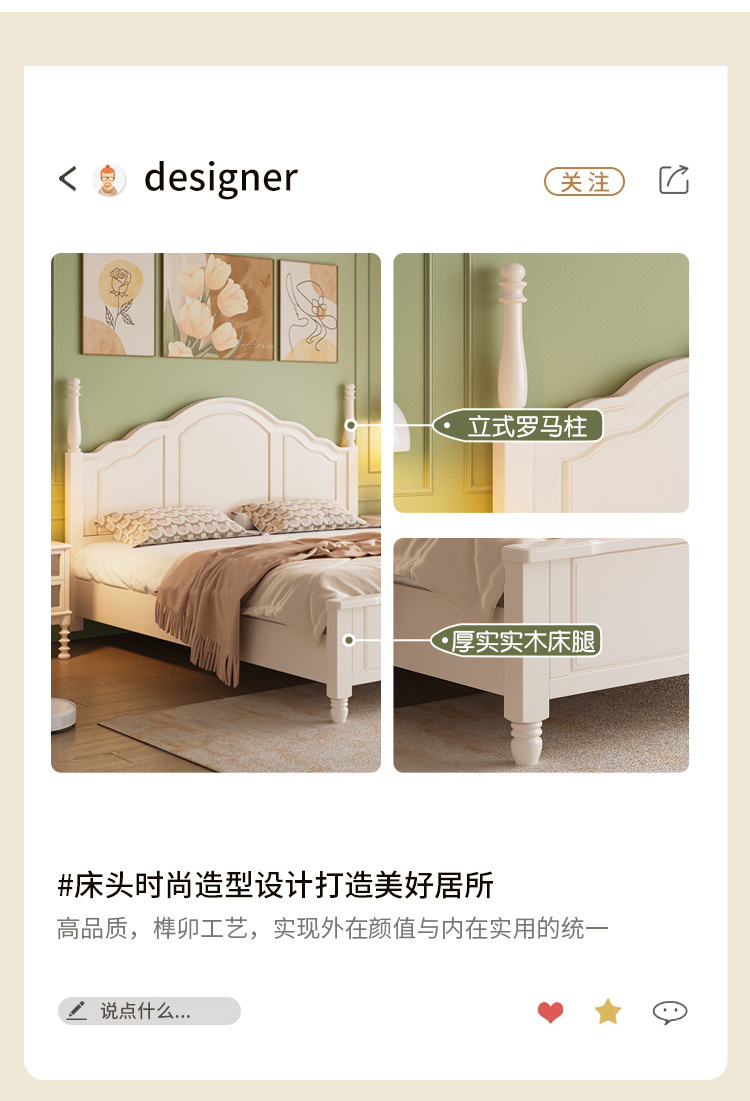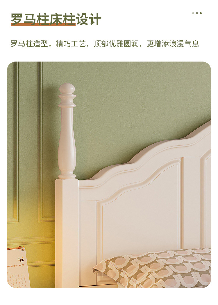 프랑스 크림 스타일 단단한 나무 침대 간단한 현대 1 M 8 큰 침대 프레임 1.5m 소녀 침실 화이트 미국 공주 침대스토어 가기