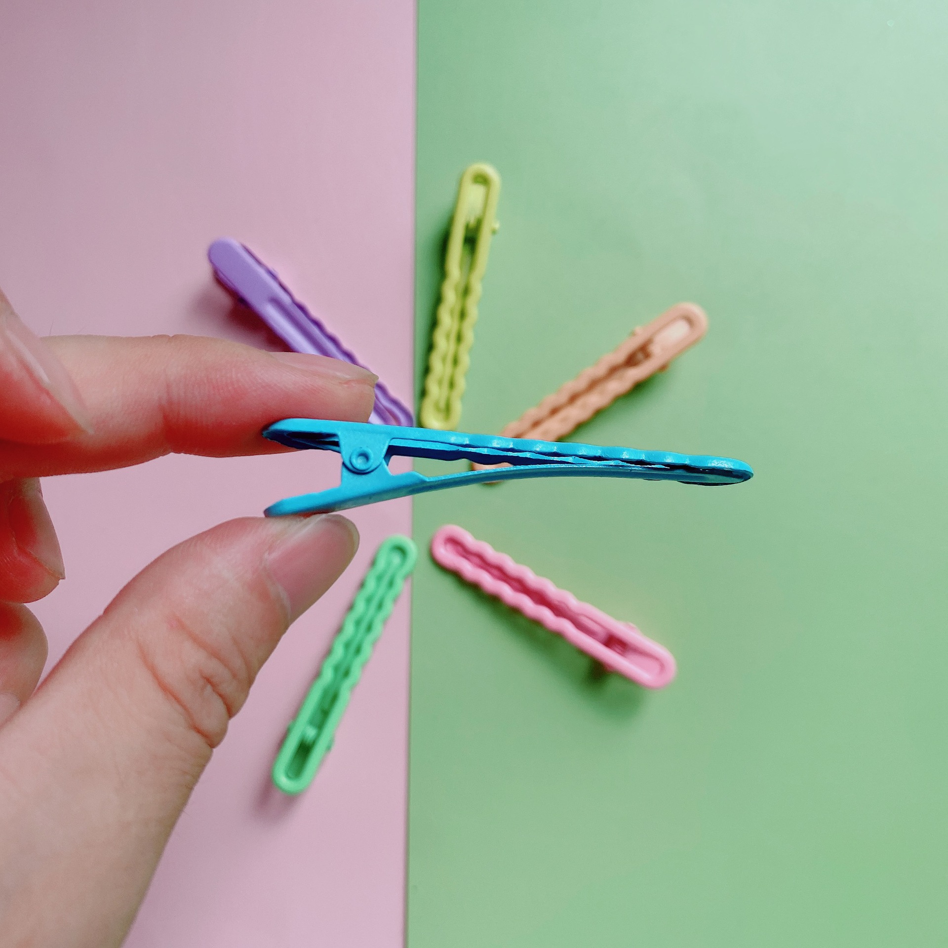 Ins 바람 캔디 컬러 헤어 클립 한 단어 헤어 클립 기하학적 인 사이드 클립 앞머리 클립 덕빌 클립 프로스티드 헤드 드레스 헤어 액세서리 도매