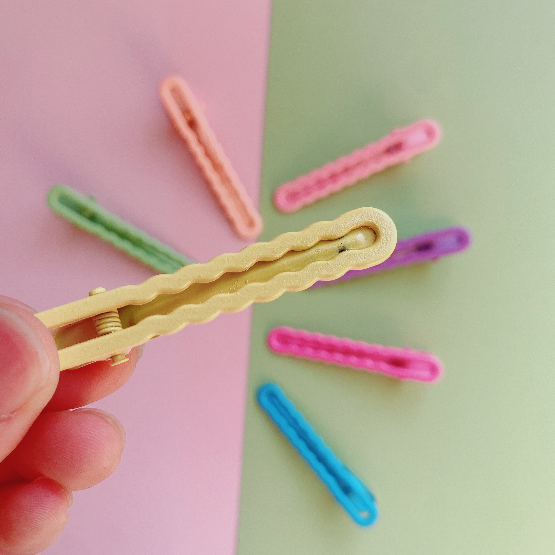 • 노란색 (컬러 밝은 표면 웨이브 클립) 6cm