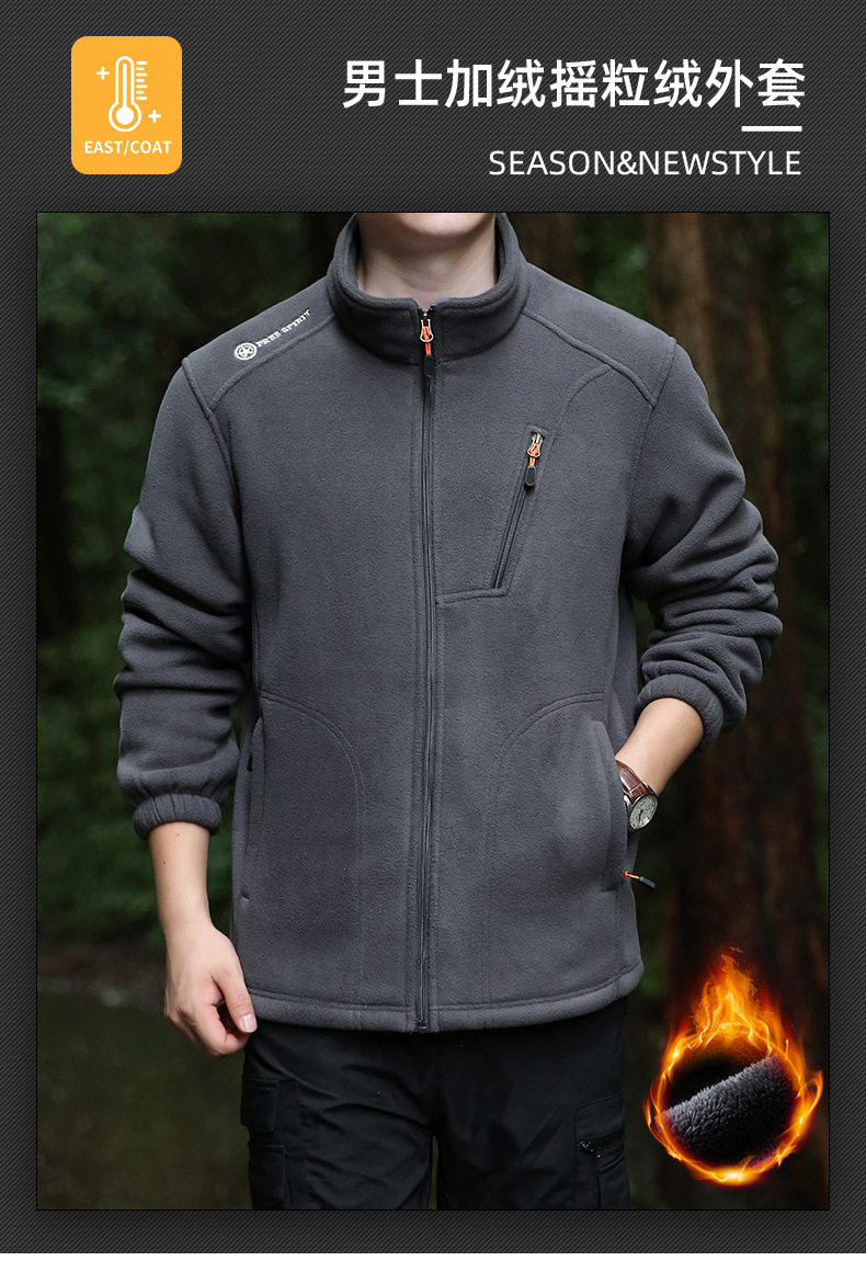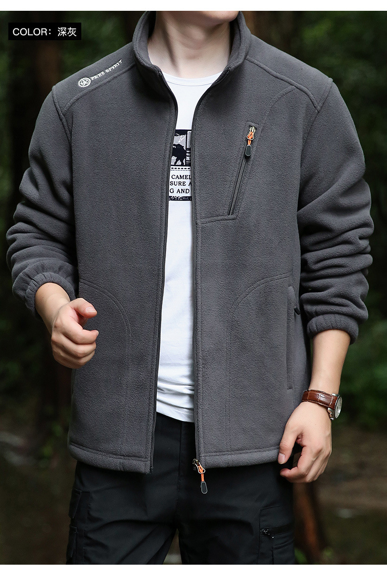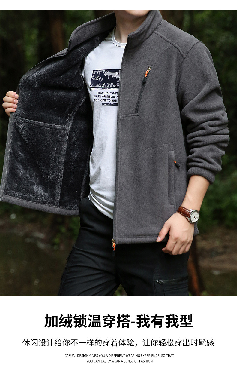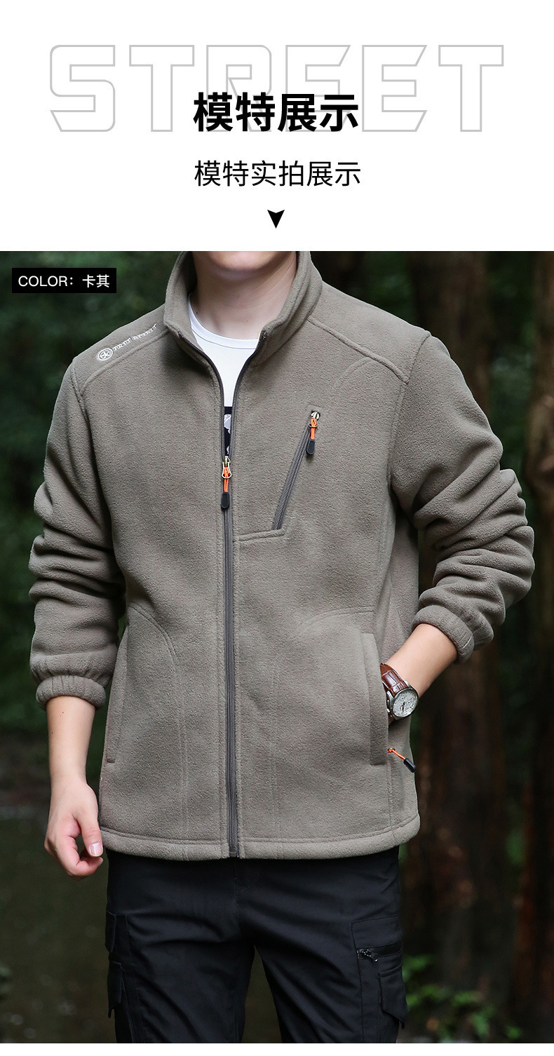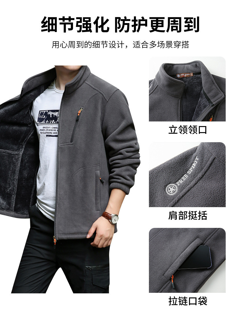 摇粒绒夹克男秋冬户外运动宽松抓绒衣外套男士冲锋衣内胆保暖男装