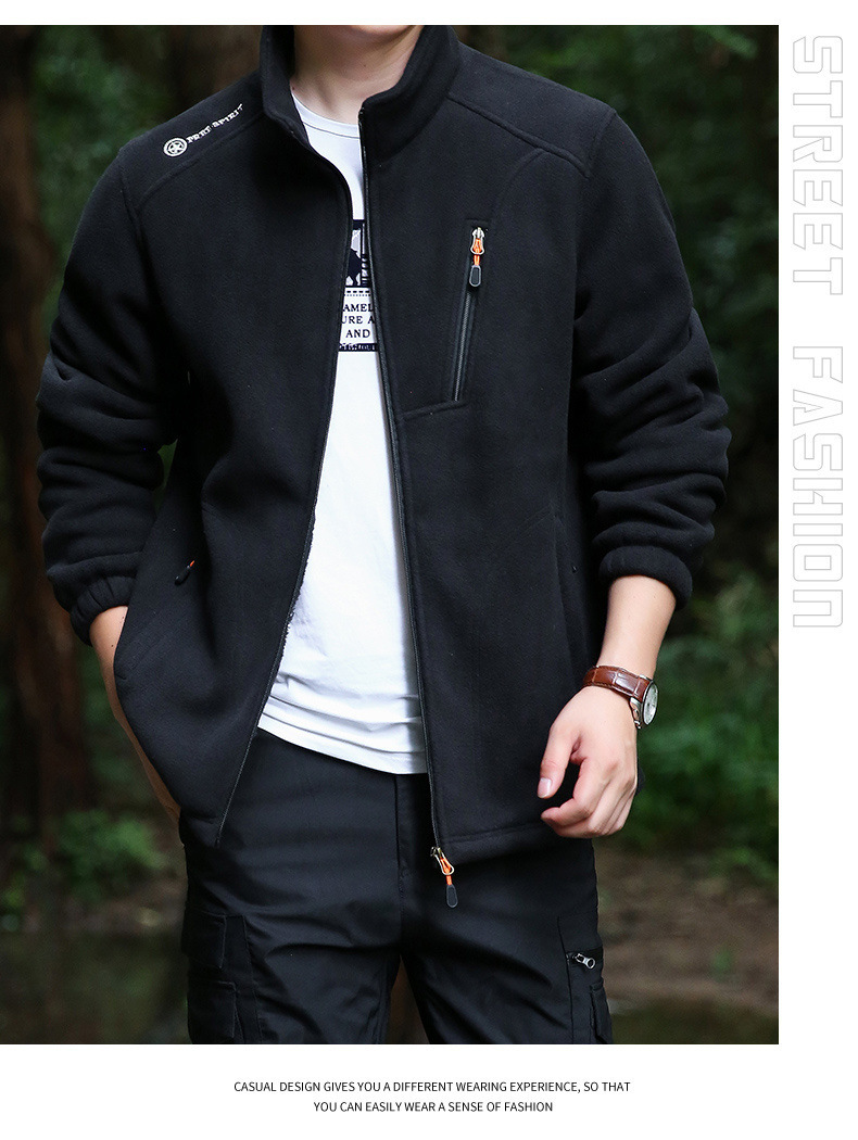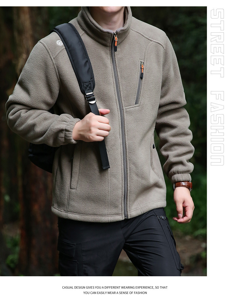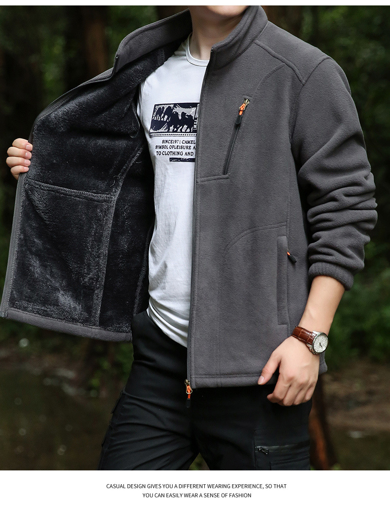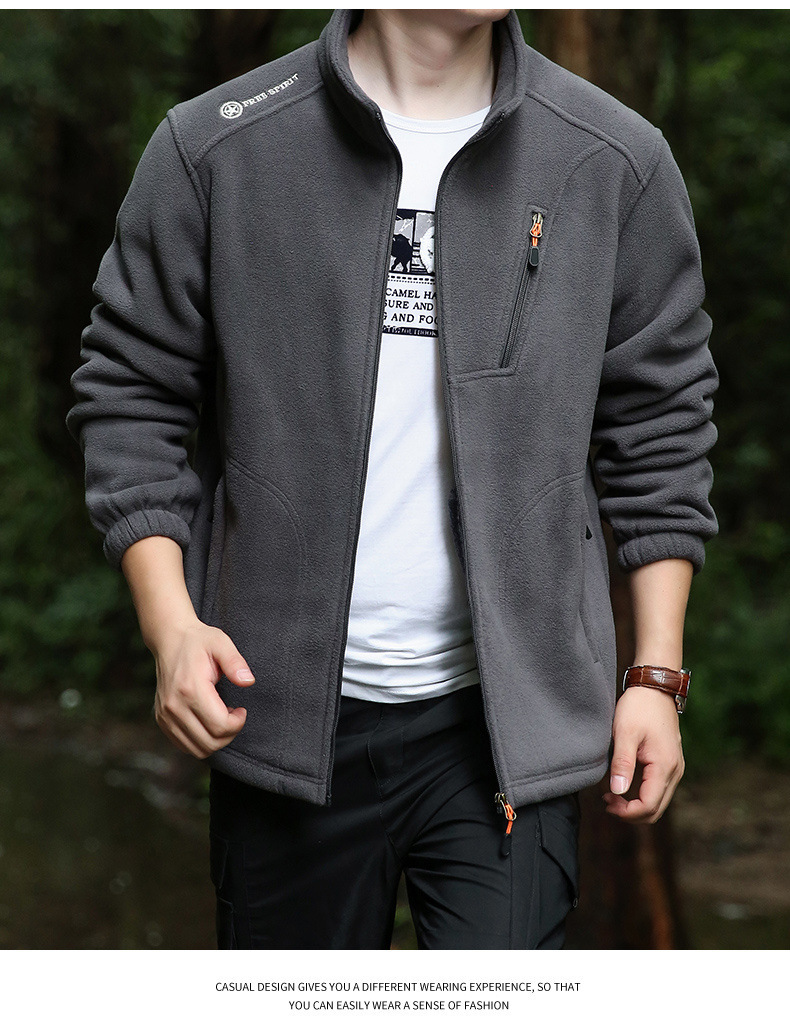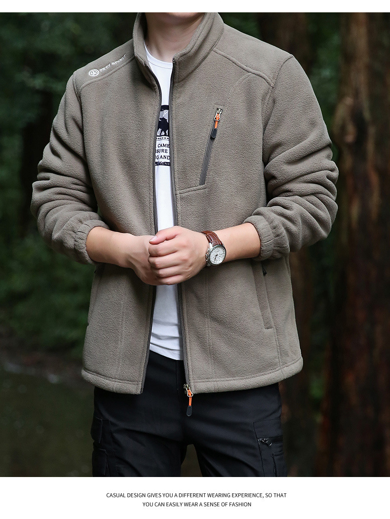 摇粒绒夹克男秋冬户外运动宽松抓绒衣外套男士冲锋衣内胆保暖男装