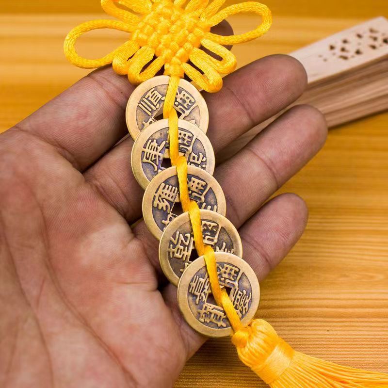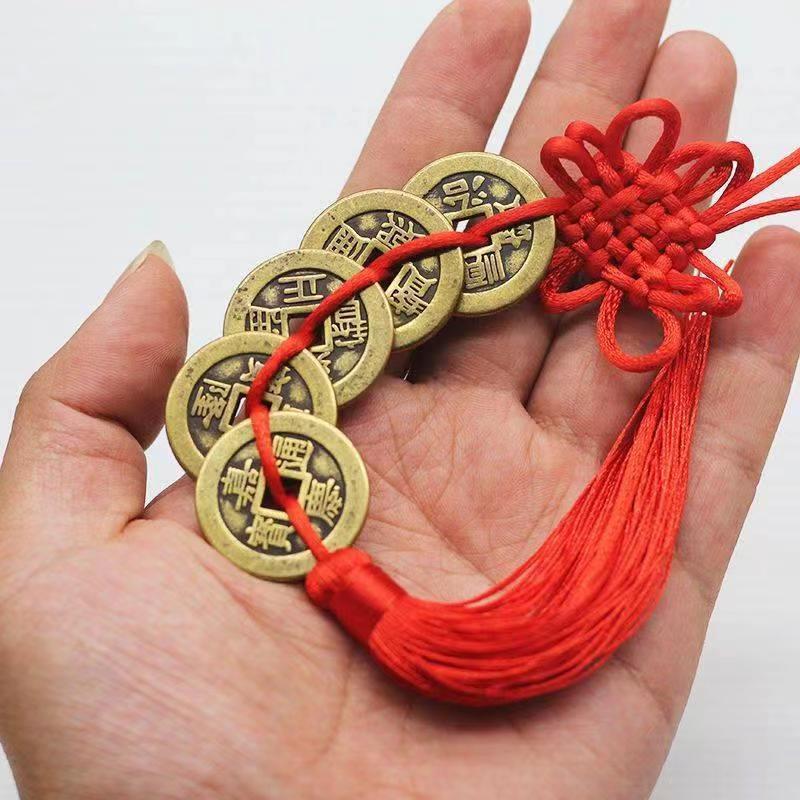 순수 구리 다섯 황제 돈 진위 중국 매듭 문에 문 사람들과 돈 두 번영 화장실 주방 침실 집 장식품