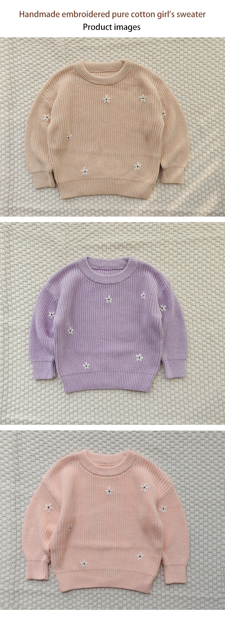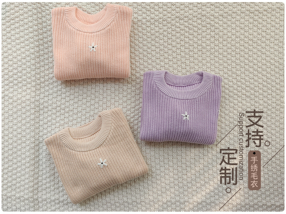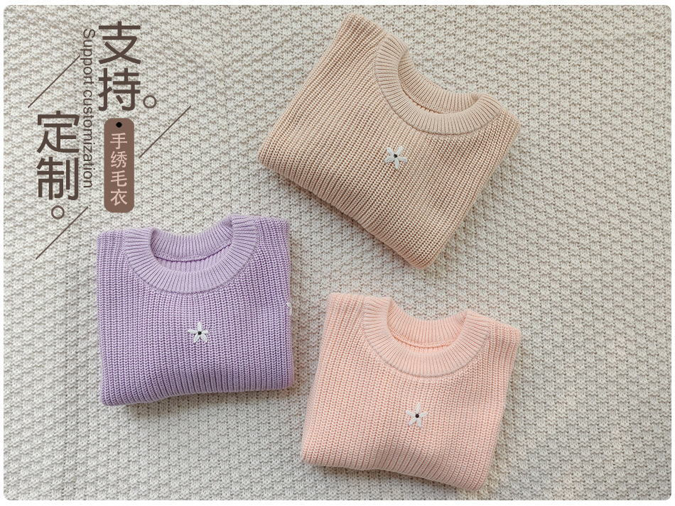 재고 있음 손으로 수 놓은 꽃 크로스 보더 순수 코튼 베이비 스웨터 카테고리 a 가을, 겨울 기본 긴팔 여자 베이비 풀오버 스웨터