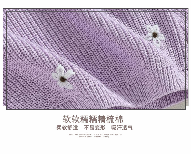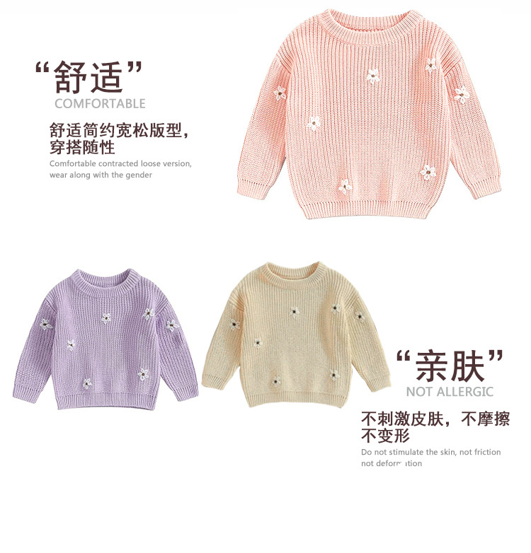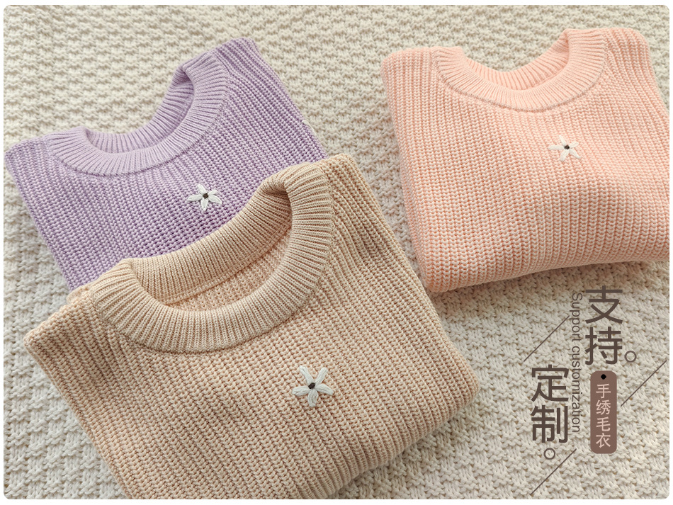 재고 있음 손으로 수 놓은 꽃 크로스 보더 순수 코튼 베이비 스웨터 카테고리 a 가을, 겨울 기본 긴팔 여자 베이비 풀오버 스웨터스토어 가기