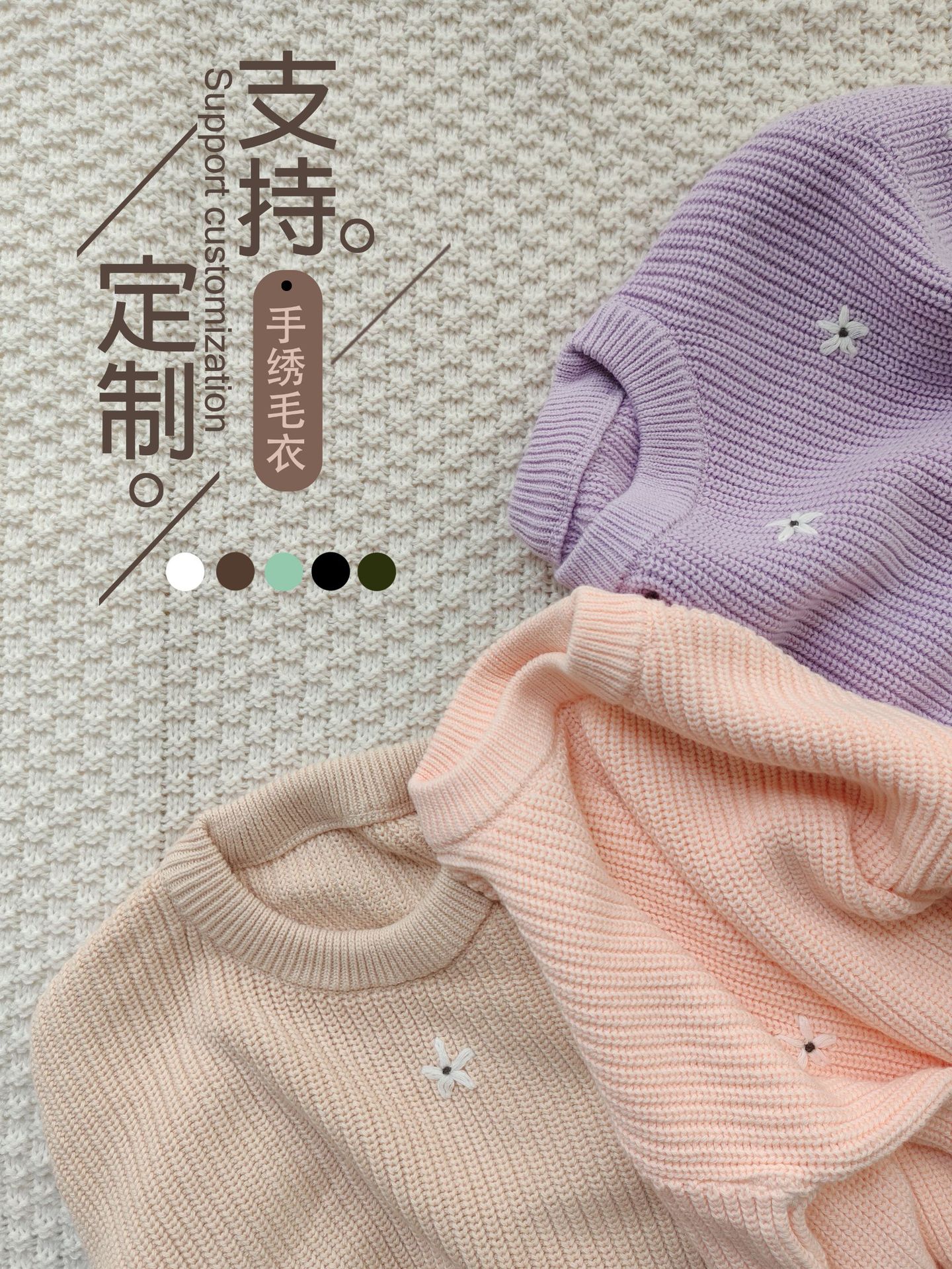 一件定制跨境包邮26英文字母花朵重工手绣女宝秋冬纯棉A毛衣打底