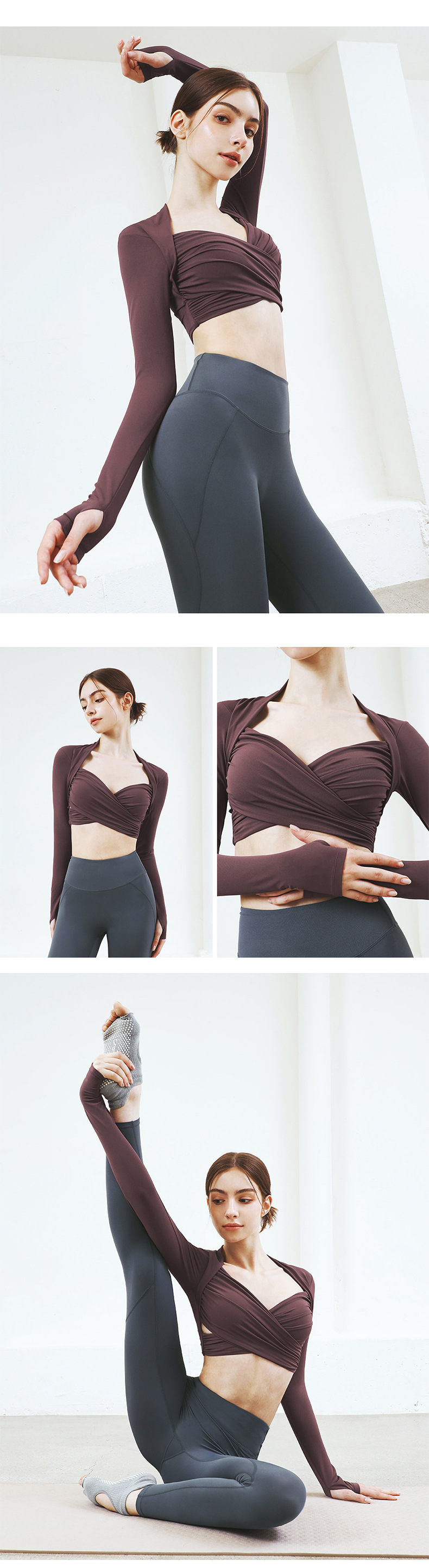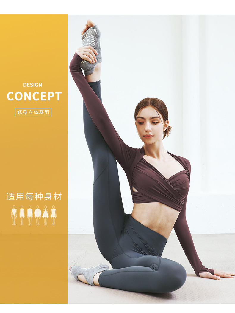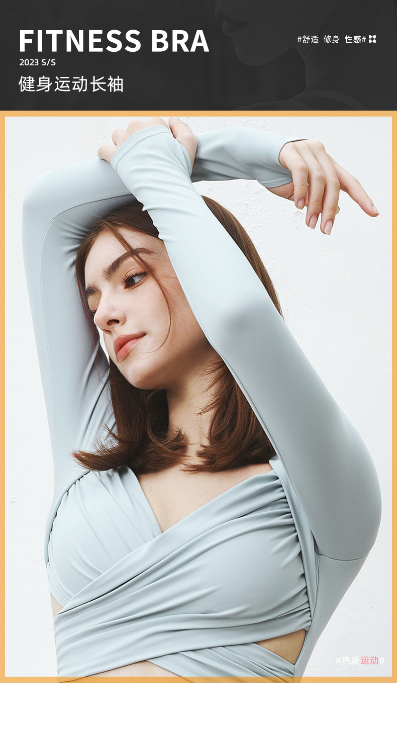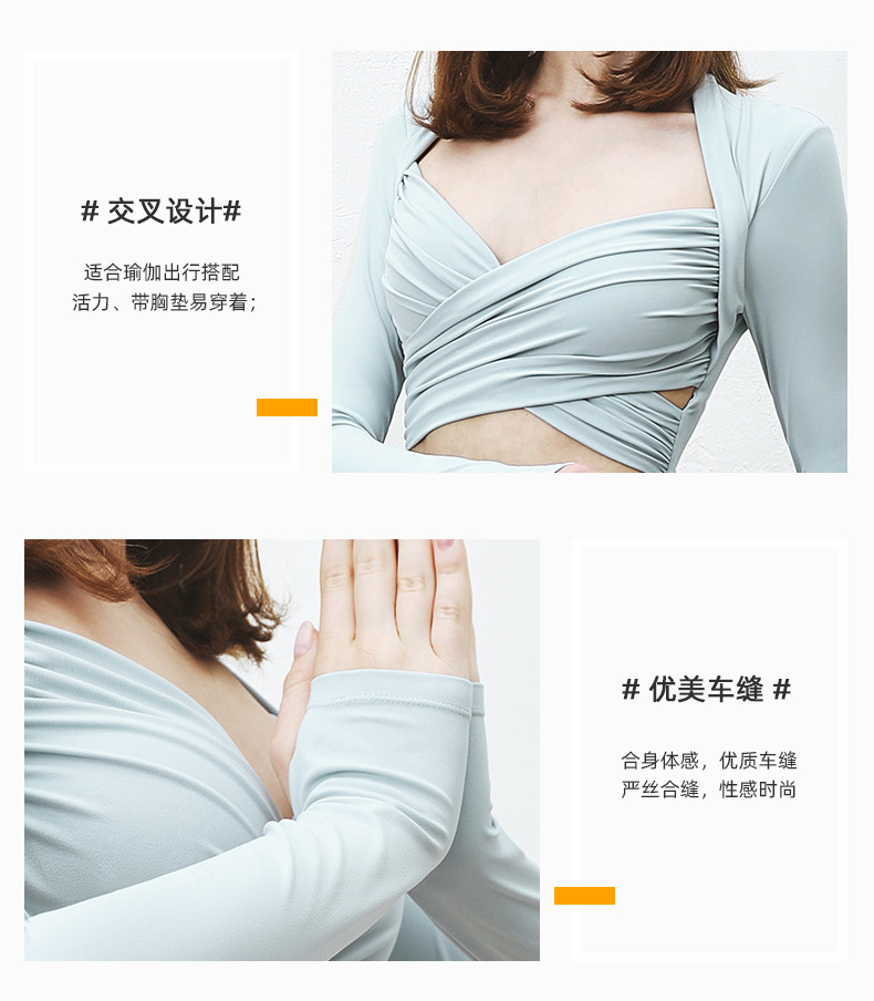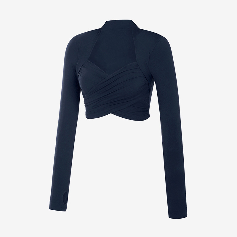 가슴 패드가있는 원피스 크로스 긴팔 타이트한 요가 의류 전문가 모양의 짧은 슬림핏 스포츠 피트니스 요가 의류