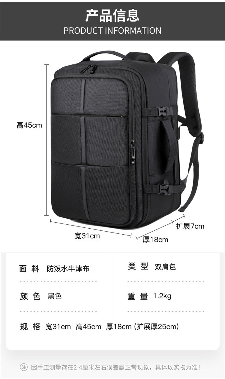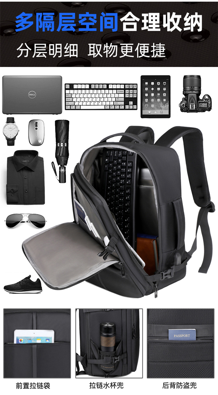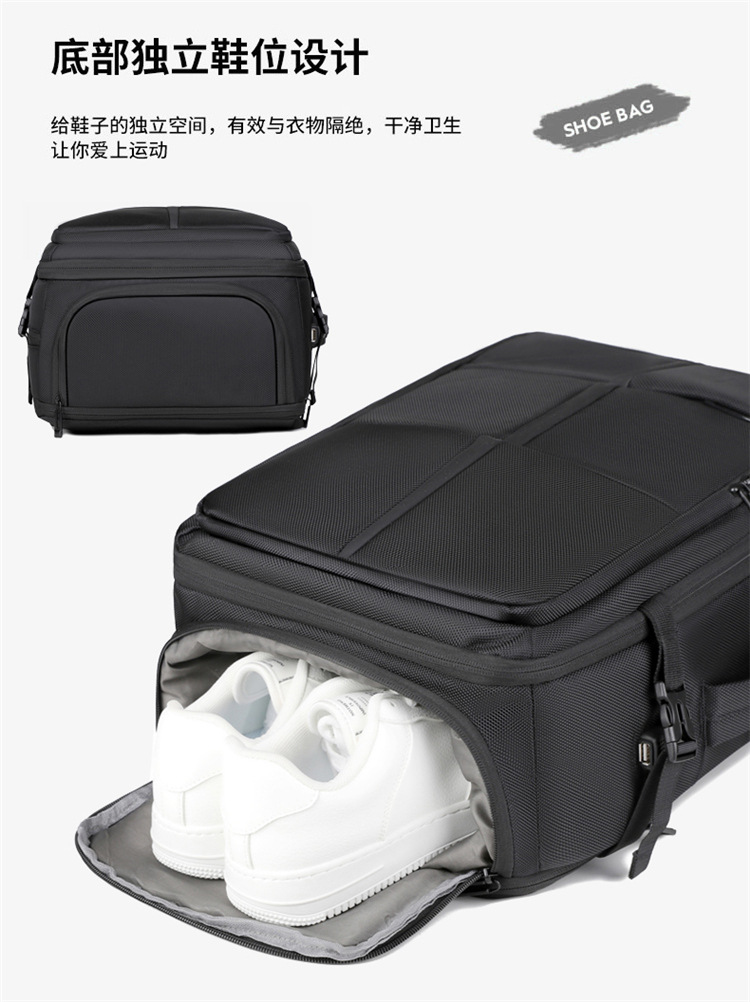 비즈니스 확장형 대용량 컴퓨터 가방, 출장용 남성용 독립 신발 수납칸 여행 가방, 남성용 백팩, 옥스포드 천 백팩