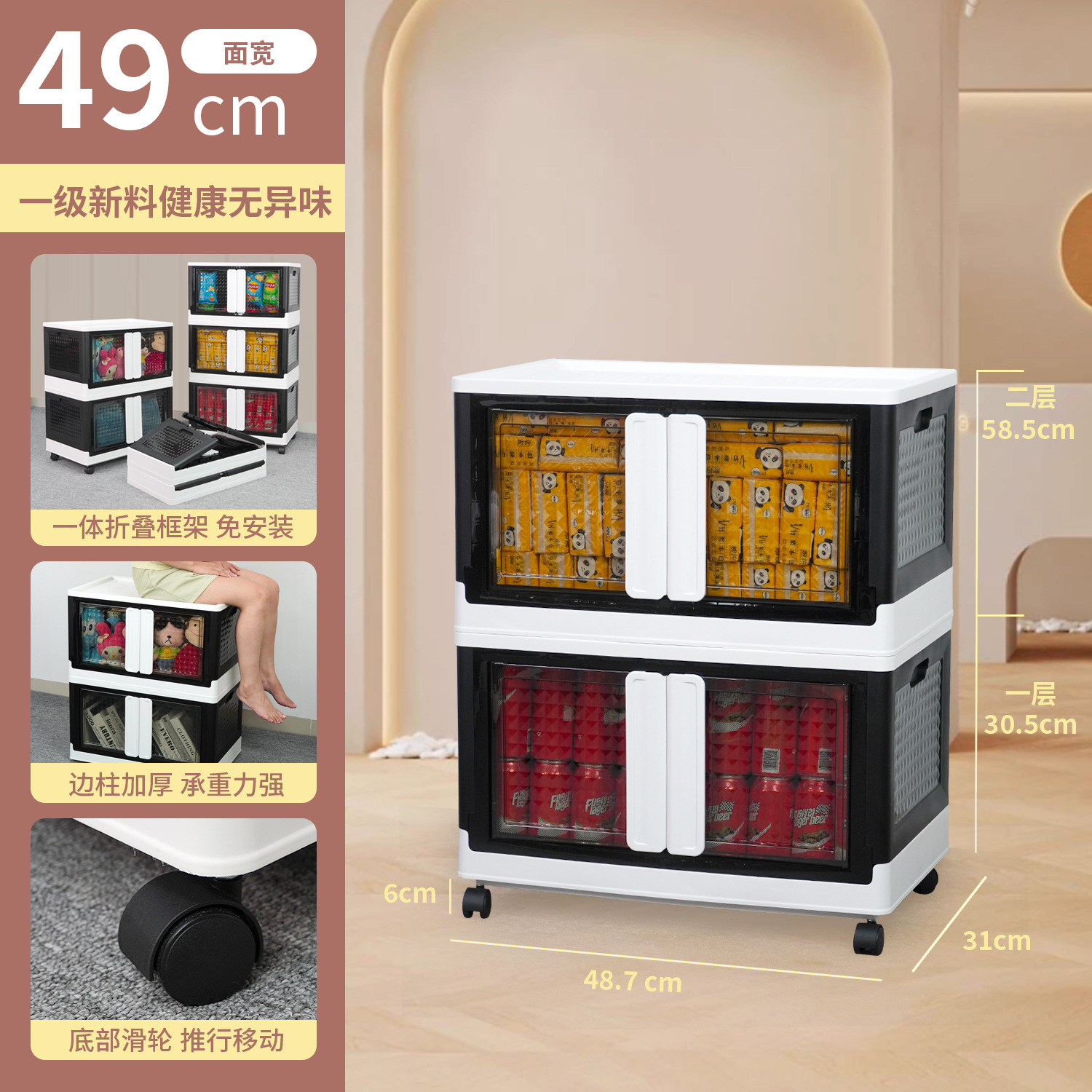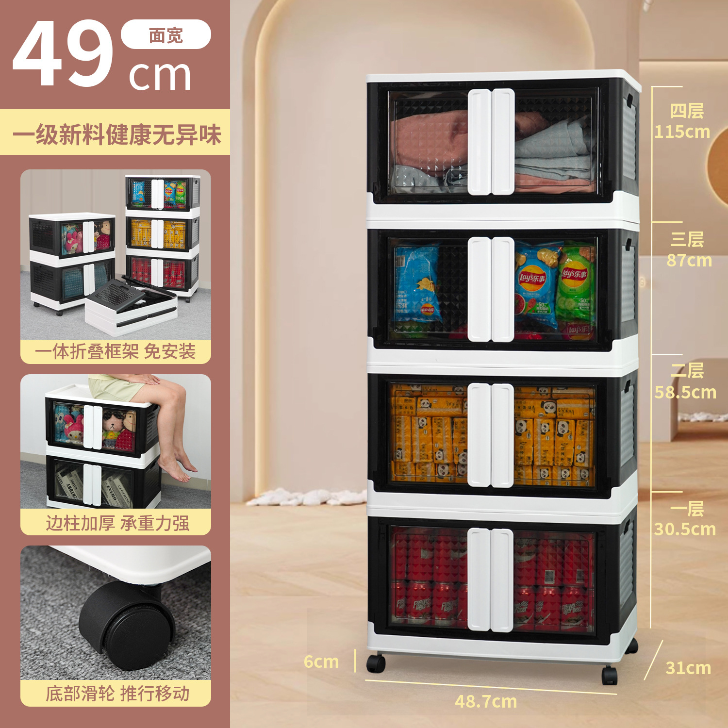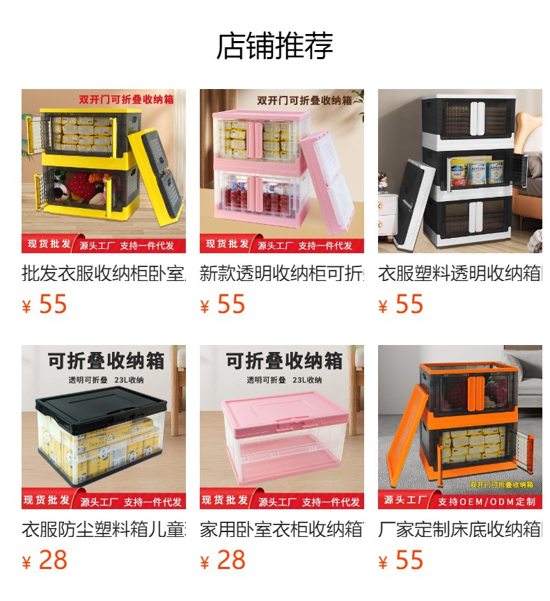 플라스틱 수납장 대용량 정리함 어린이 장난감 수납함 바퀴 달린 옷 및 잡화 수납함 접이식 상자 도매스토어 가기