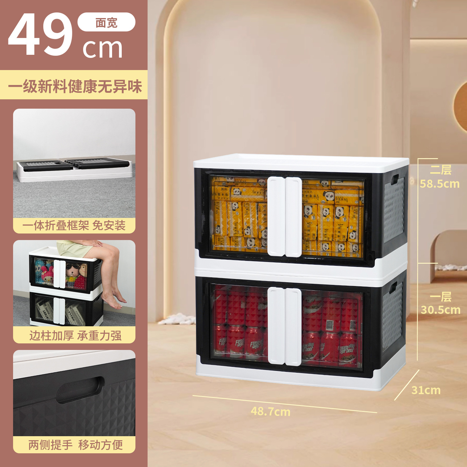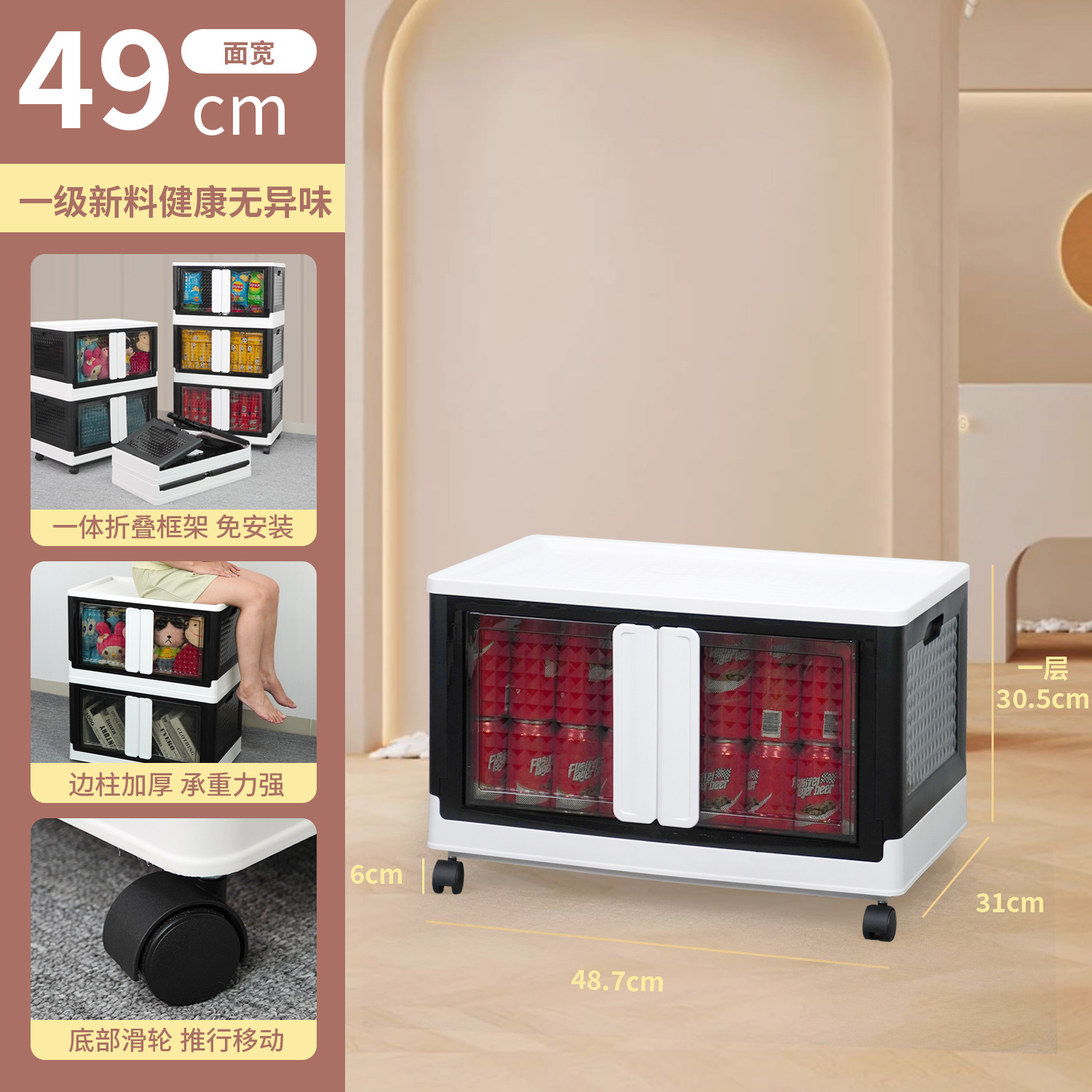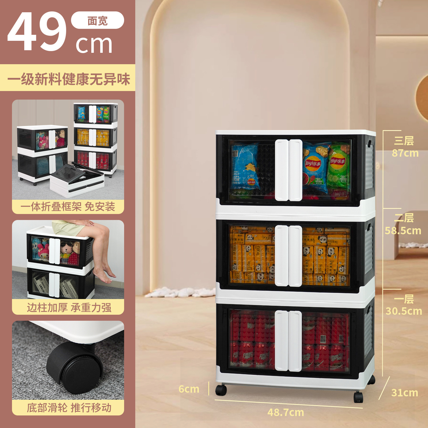 플라스틱 수납장 대용량 정리함 어린이 장난감 수납함 바퀴 달린 옷 및 잡화 수납함 접이식 상자 도매스토어 가기