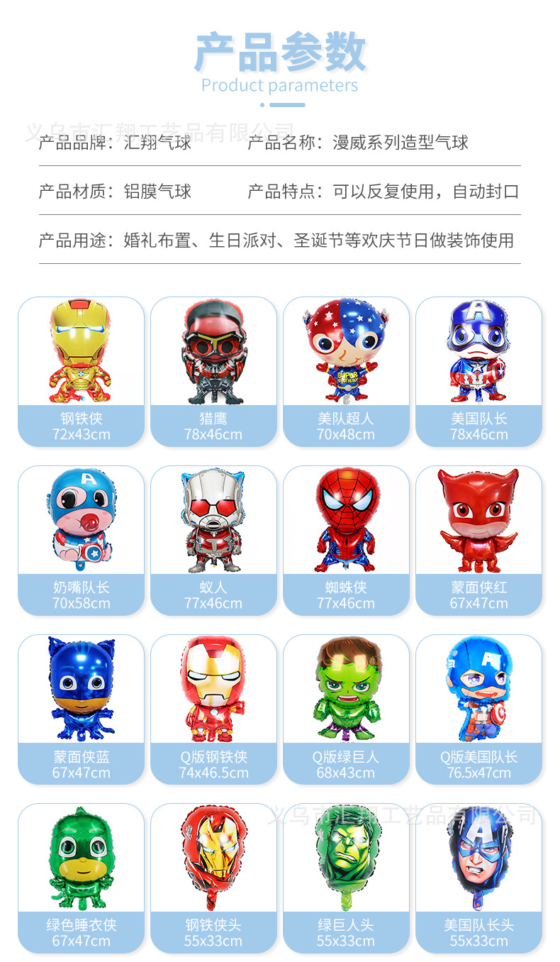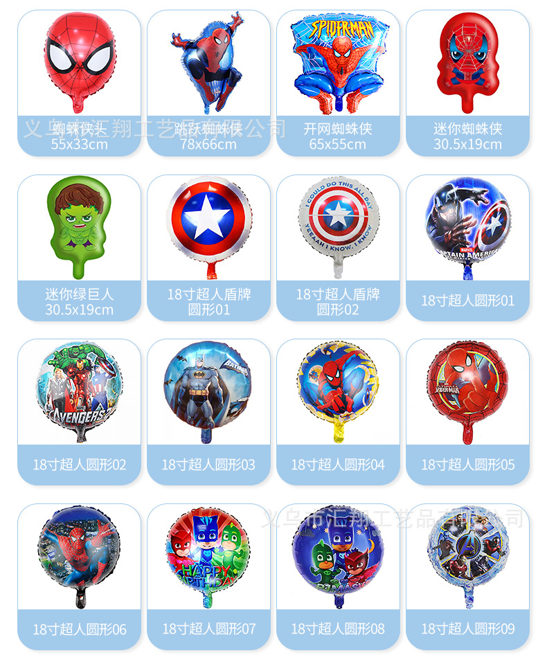새로운 만화 마블 알루미늄 필름 풍선 캡틴 아메리카 헐크 빵 슈퍼맨 개미 모양 생일 장식 소품스토어 가기