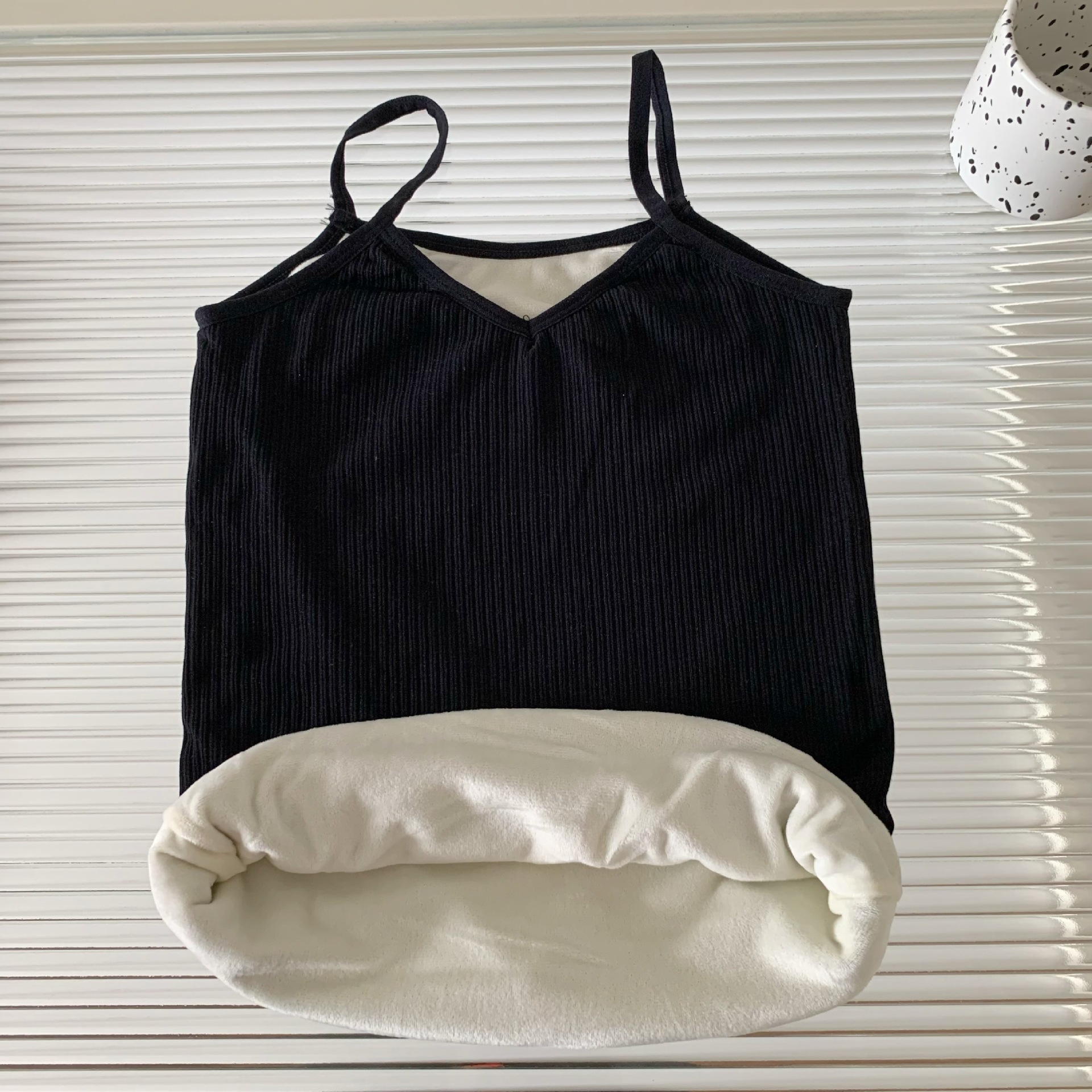 기모 두꺼운 따뜻한 조끼 V-넥 베이스 내부 슬림 핏 얇은 따뜻한 조끼 슬링 탑 베이스 셔츠 여성용스토어 가기