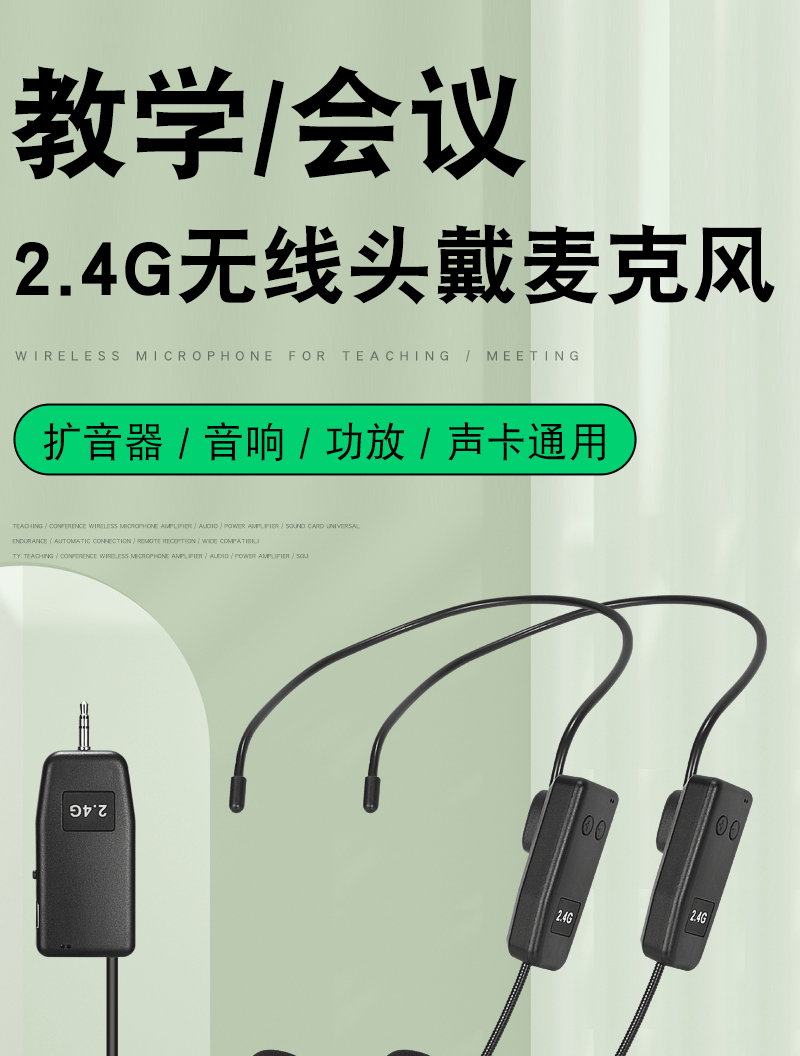 2.4g 무선 마이크 작은 꿀벌 라우드 스피커 헤드셋 앰프 교사 스테레오 성능 헤드셋 마이크