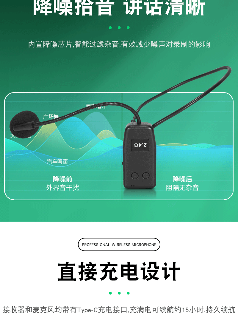 2.4g 무선 마이크 작은 꿀벌 라우드 스피커 헤드셋 앰프 교사 스테레오 성능 헤드셋 마이크스토어 가기