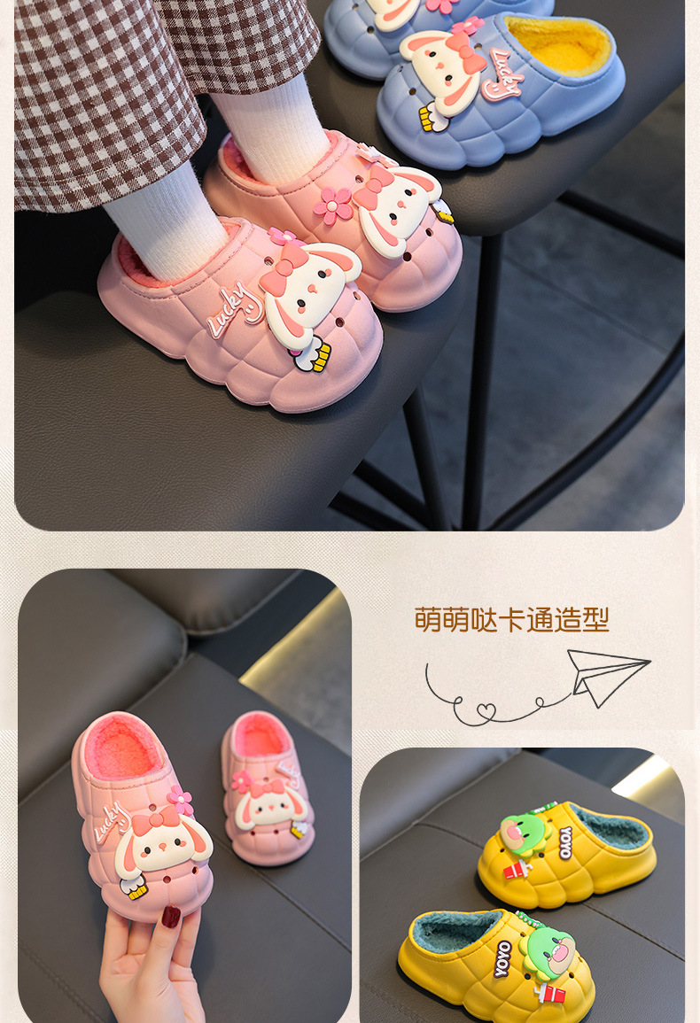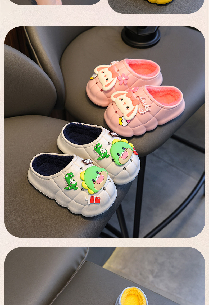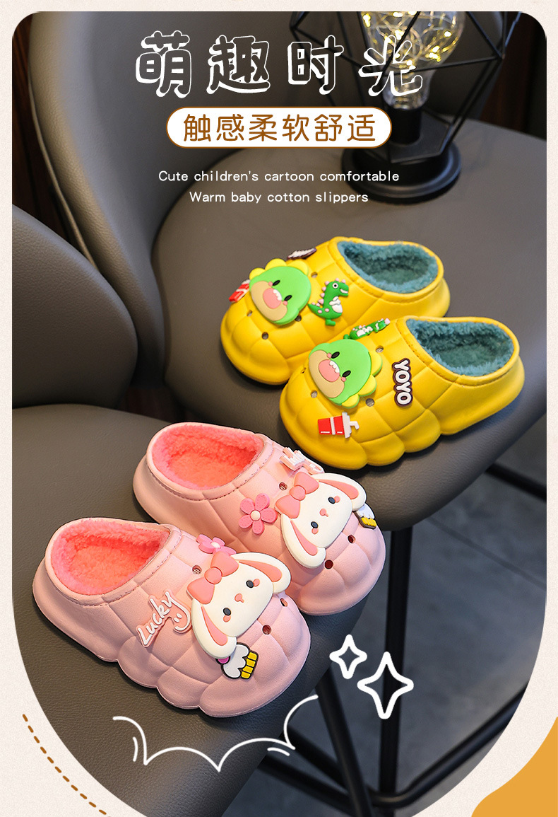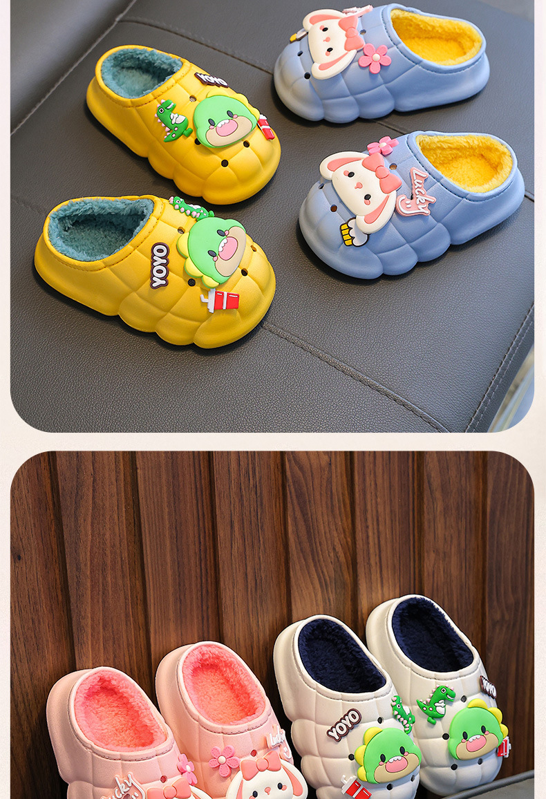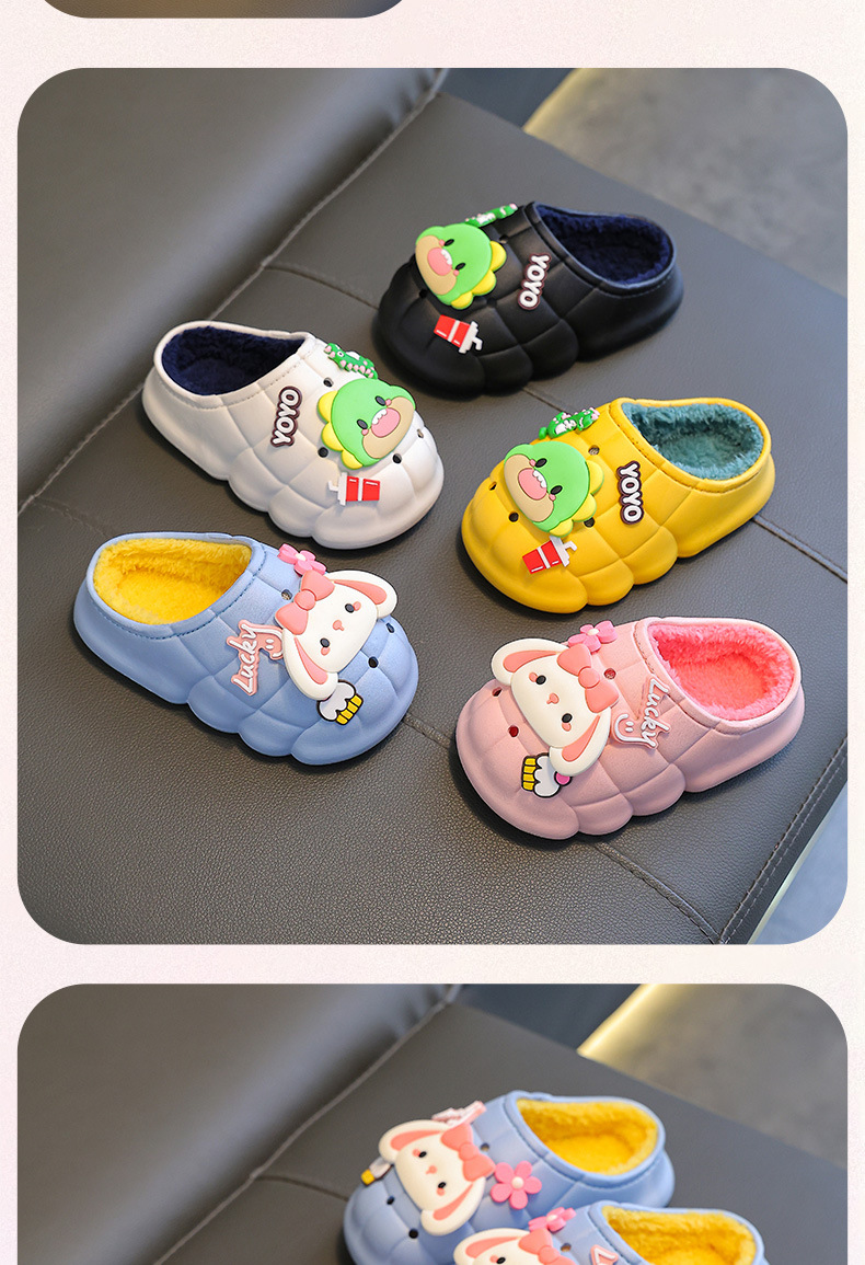 소년과 소녀를위한 겨울 어린이 면화 슬리퍼 따뜻한 기모 방수 미끄럼 방지 유아 1-3 세 2 아기 푹신한 슬리퍼