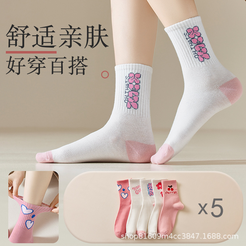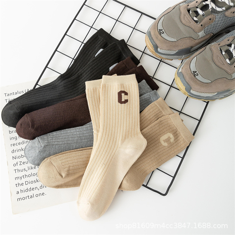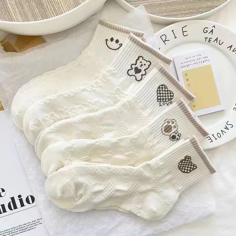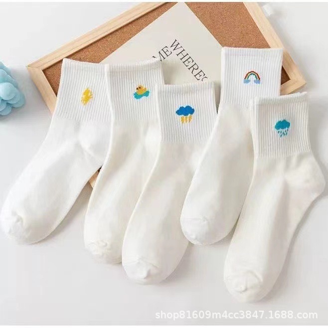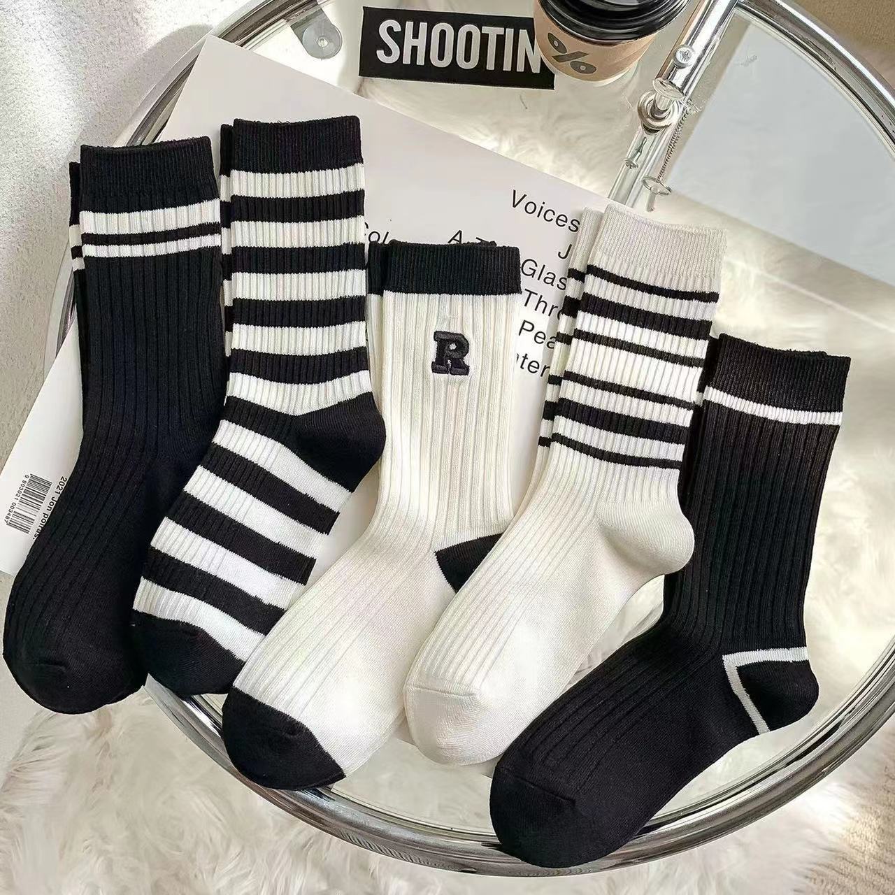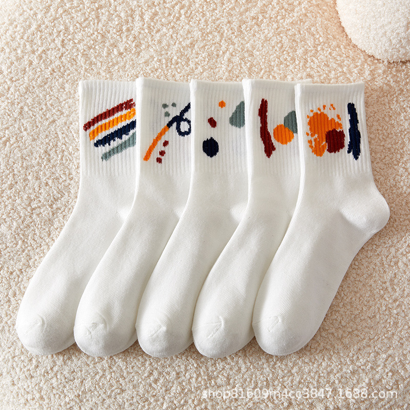 • 남녀공용 미드 튜브 양말 [미드 튜브 화이트]