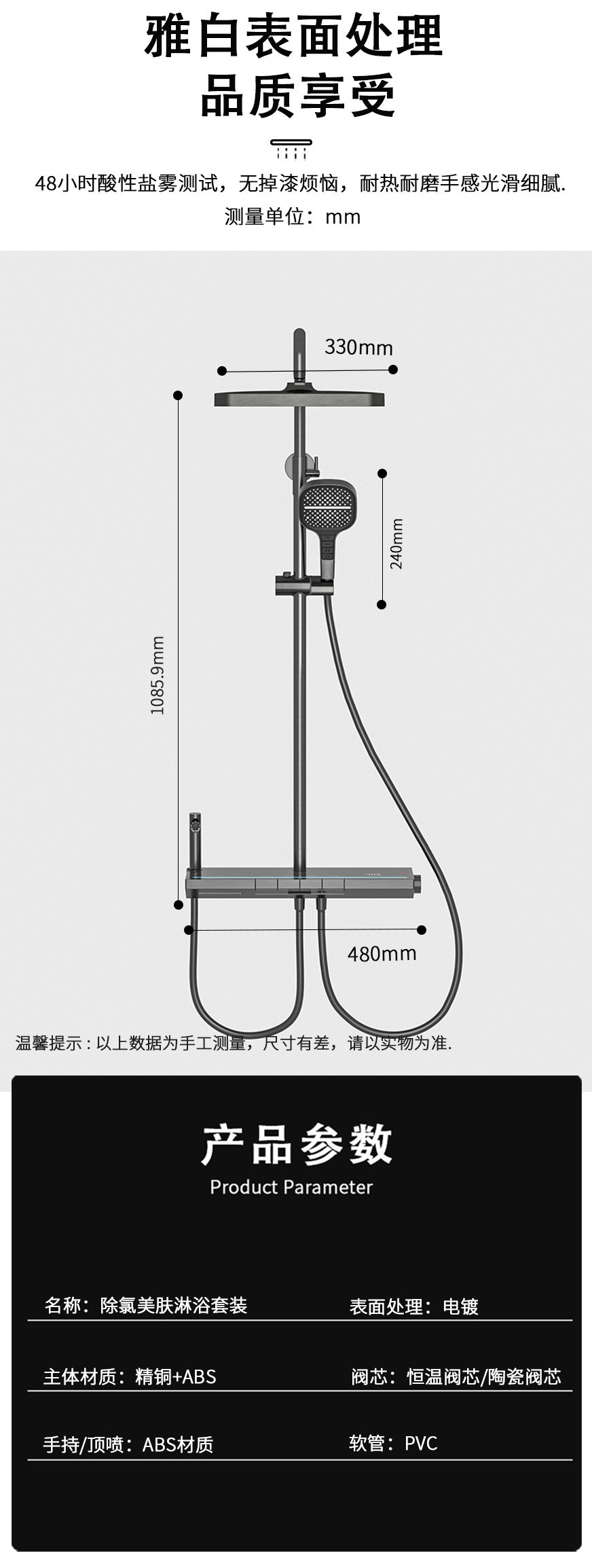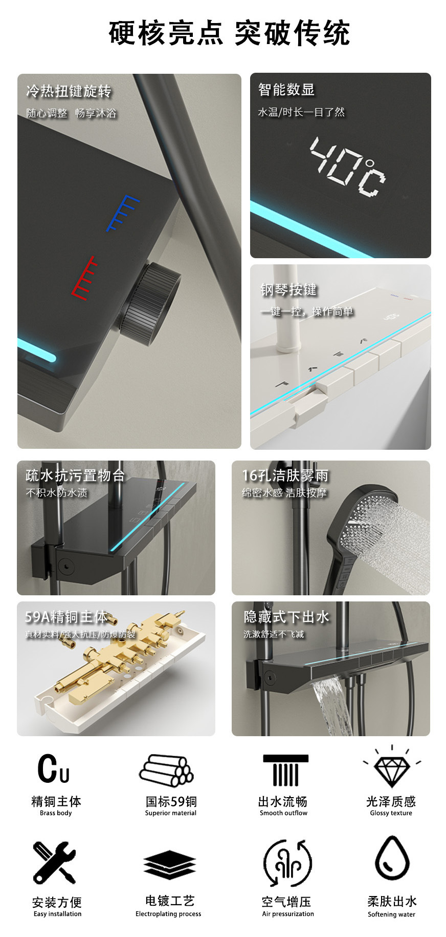 • 하이 퀄리티/사각 튜브 풀 샤워/온도 조절 제어/대기등/건 그레이