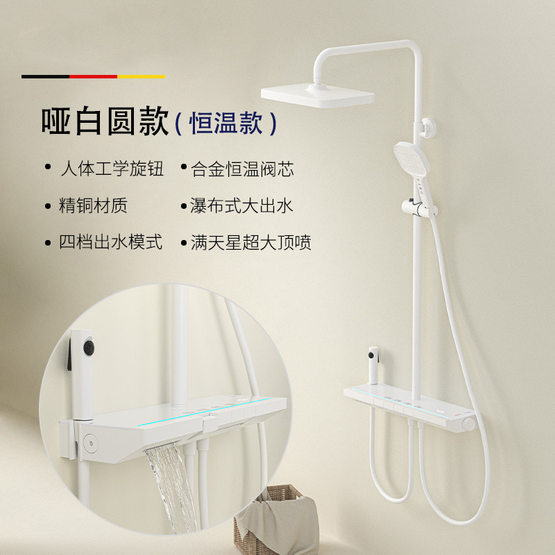 • 하이 퀄리티/원형 튜브 풀 세트 샤워/온도 조절 제어/건 화이트