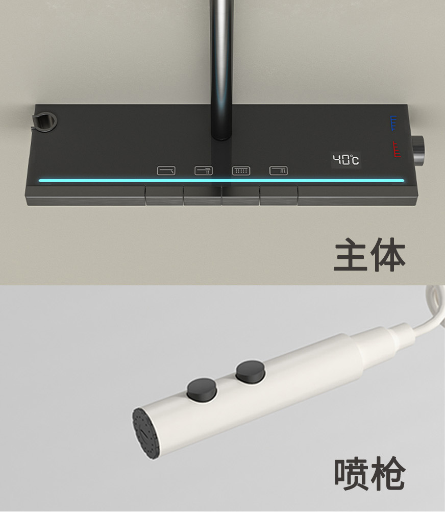 • 하이 퀄리티/사각 튜브 풀 샤워/냉온수 스위치/주변 조명/건 그레이