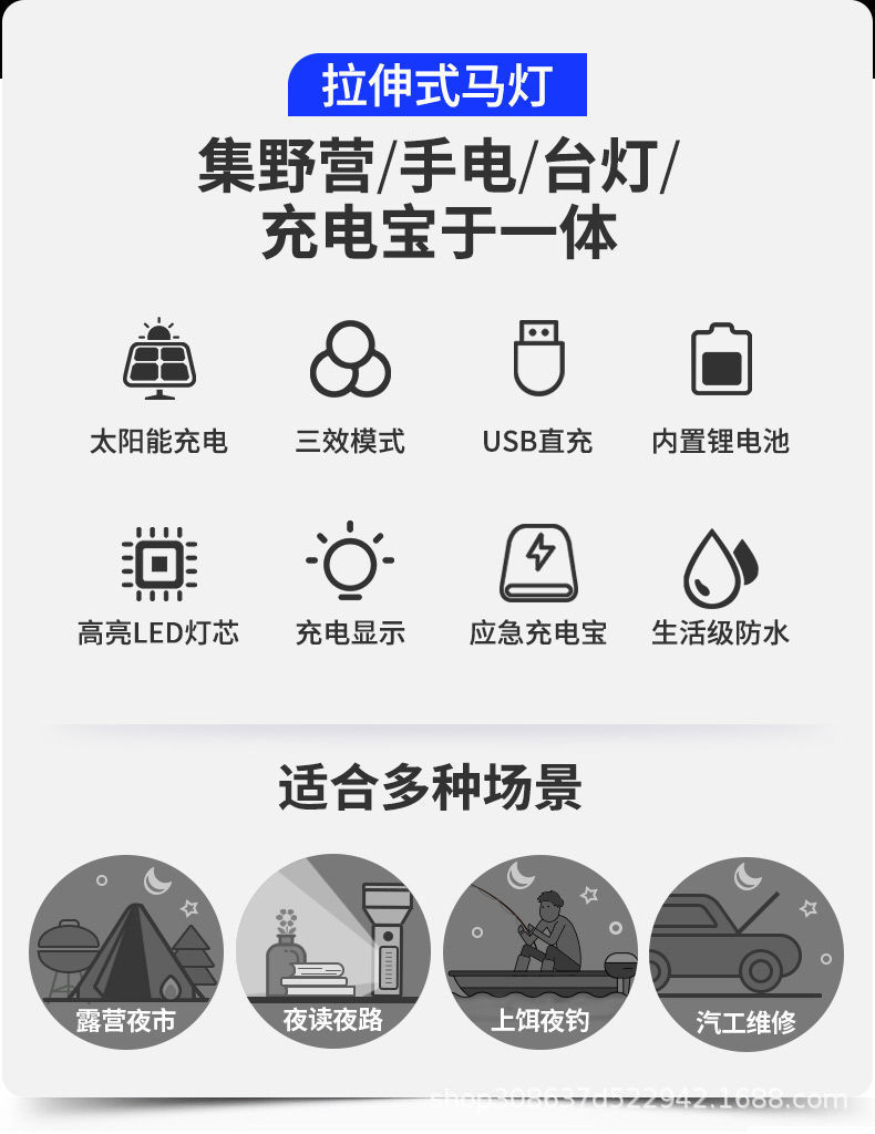 야외 파워 캠핑 라이트 캠핑 라이트 LED 조명 실속 태양 광 비상 조명 텐트 충전식 랜턴