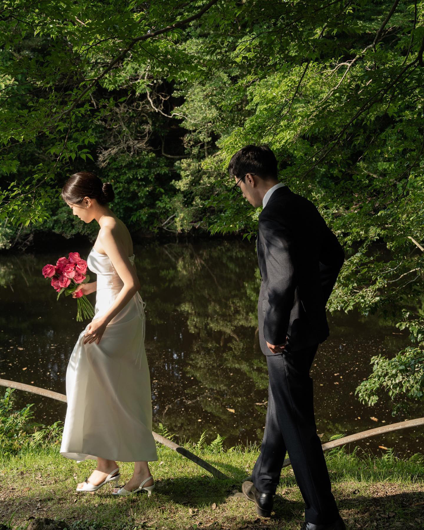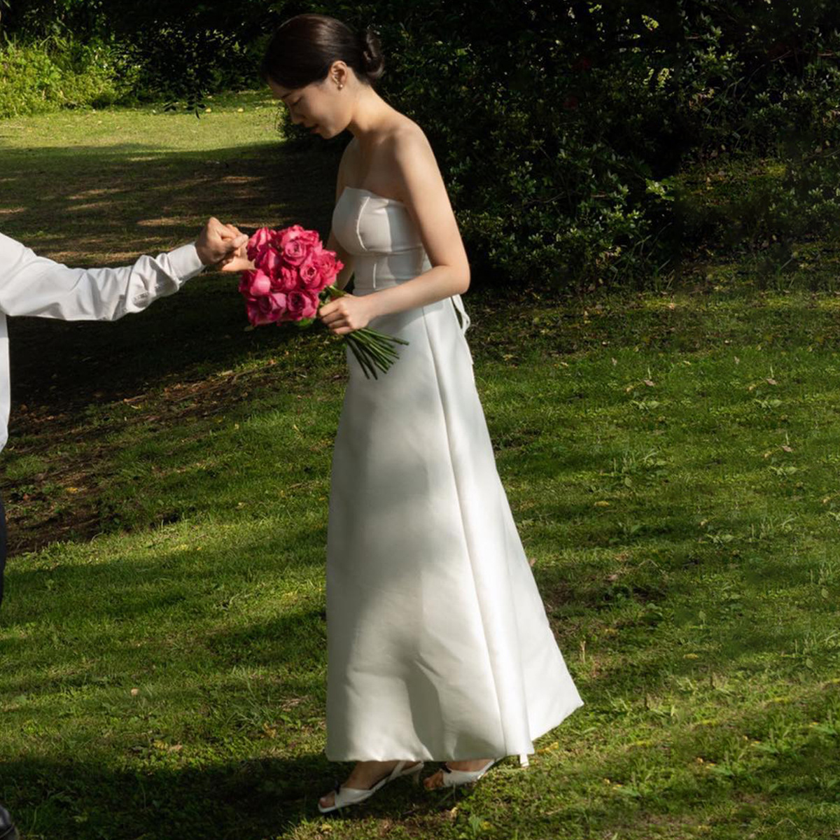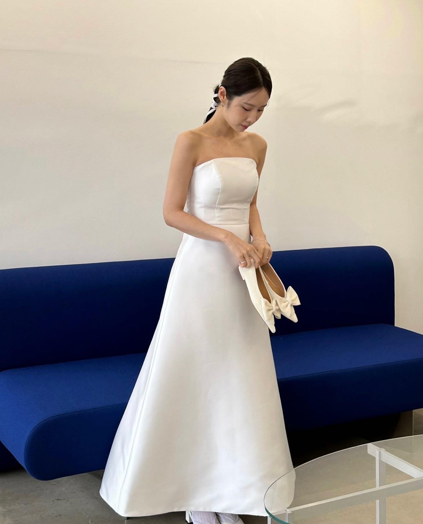 프랑스 스타일 빛 결혼식 원피스 한국 스타일 끈이없는 새틴 간단한 사진 스튜디오 테마 사진 약혼 성인 의식 저녁 원피스 백인 여성스토어 가기