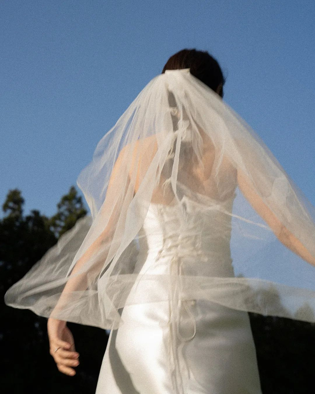 购买此款礼服会送一段软网,可以缠绕在领口作为装饰