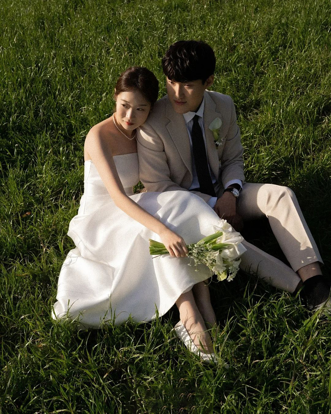 프랑스 스타일 빛 결혼식 원피스 한국 스타일 끈이없는 새틴 간단한 사진 스튜디오 테마 사진 약혼 성인 의식 저녁 원피스 백인 여성