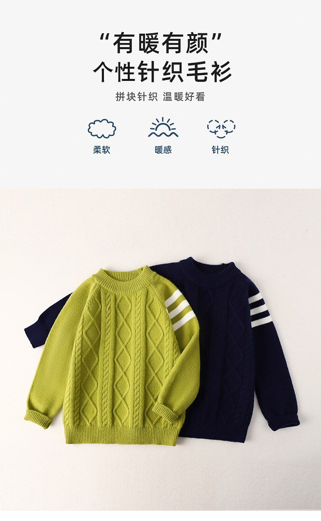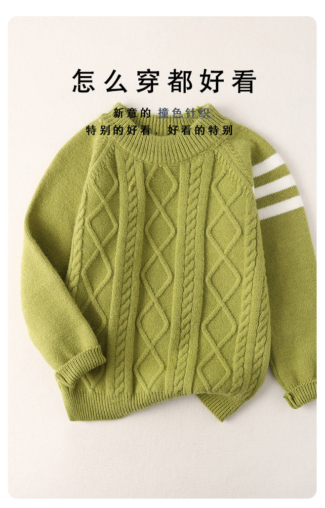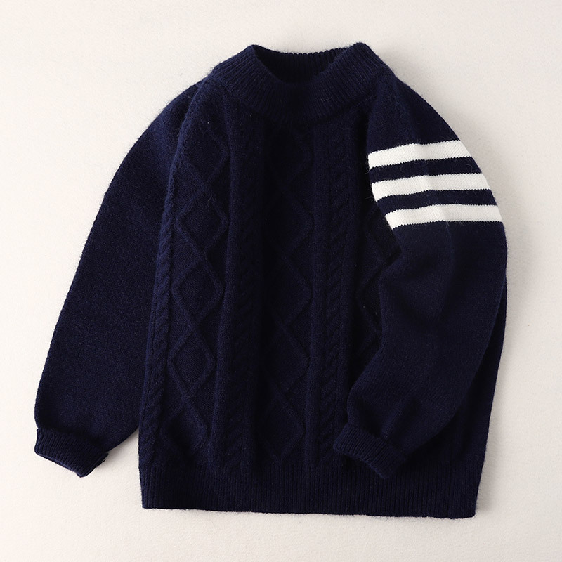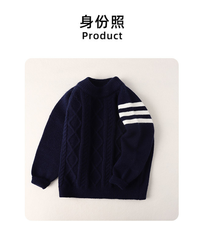아동용 스웨터 삼선 스웨터 아동복 남아용 단색 따뜻한 풀오버 중대형 아동용 가을 겨울 니트웨어스토어 가기