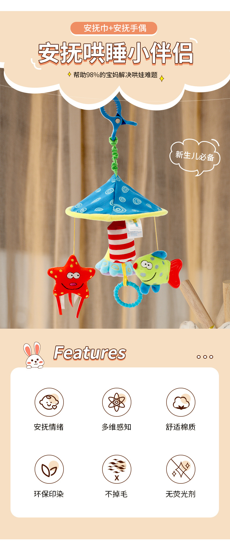 w 아기 딸랑이 침대 걸이 아기 0-1 세 소년과 소녀 유모차 펜던트 패브릭 플러시 장난감 침대 옆 걸이 벨스토어 가기
