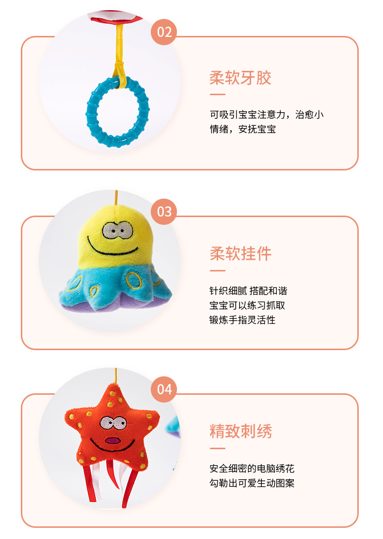 w 아기 딸랑이 침대 걸이 아기 0-1 세 소년과 소녀 유모차 펜던트 패브릭 플러시 장난감 침대 옆 걸이 벨