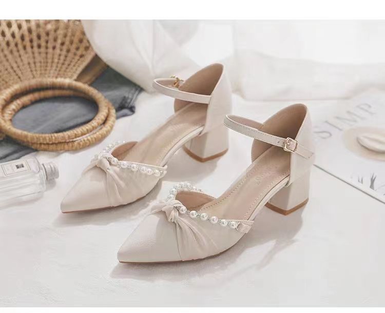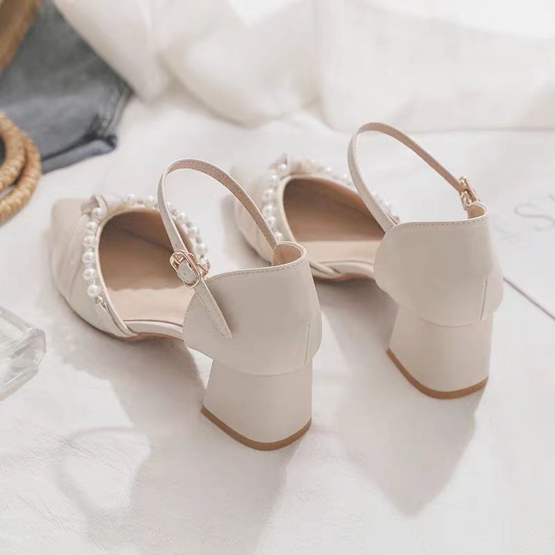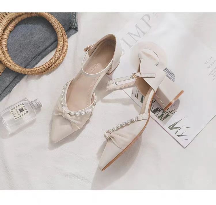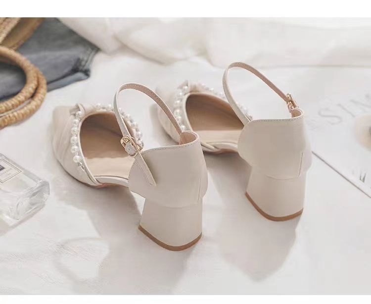 메리 제인 신발 2024 봄 새로운 얕은 입 지적 발가락 하이힐 두꺼운 뒤꿈치 요정 스타일 Baotou 샌들 여성 여름을위한 단일 신발스토어 가기