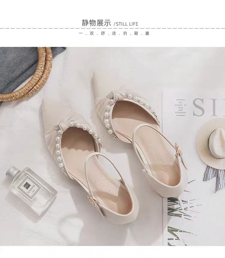 메리 제인 신발 2024 봄 새로운 얕은 입 지적 발가락 하이힐 두꺼운 뒤꿈치 요정 스타일 Baotou 샌들 여성 여름을위한 단일 신발