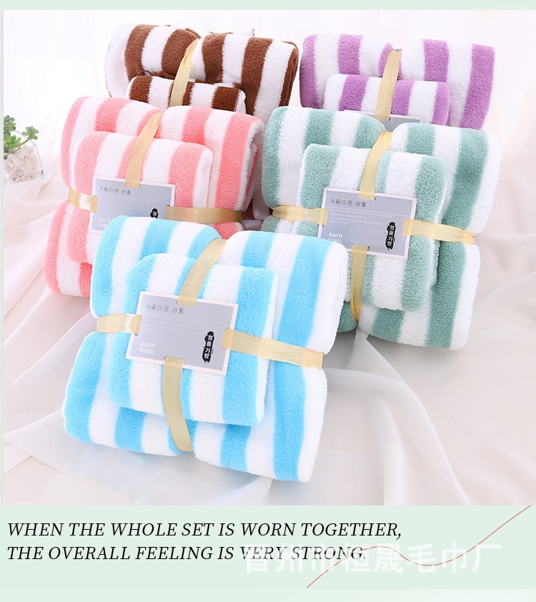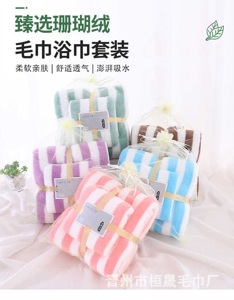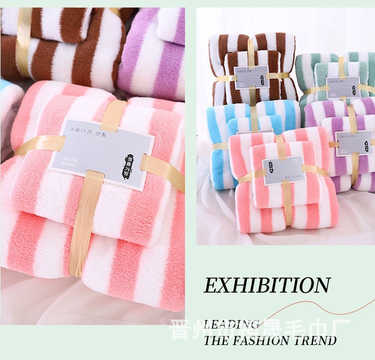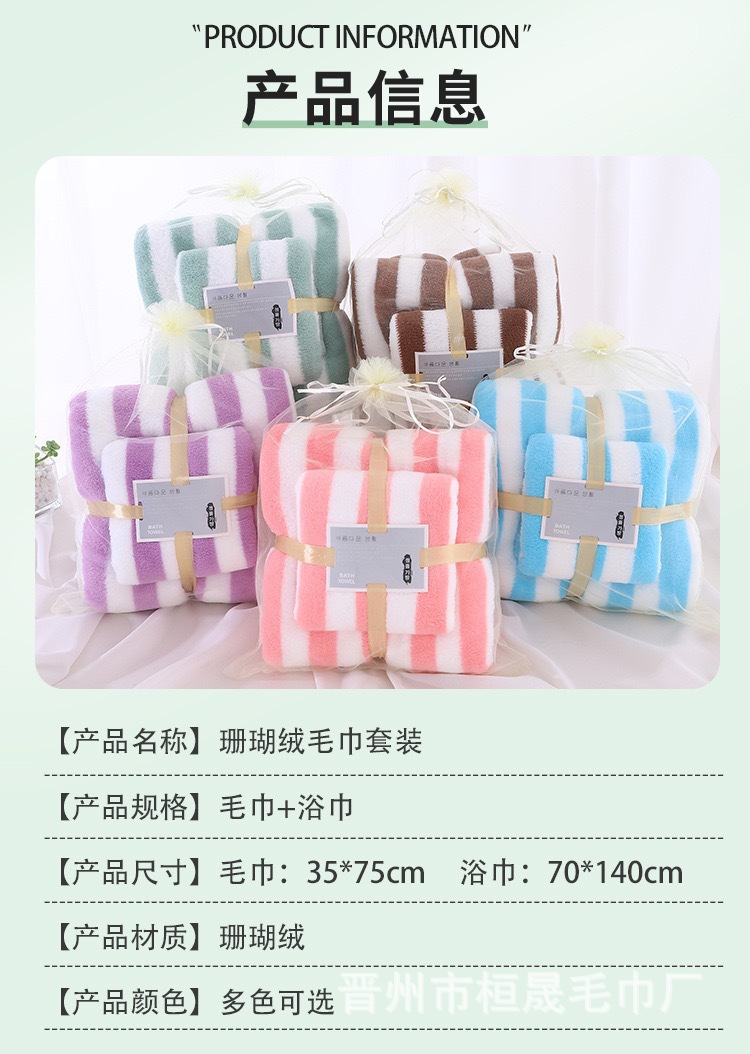 남녀 학생용 도매 보푸라기 없는 흡수성 목욕타월 타월 2 장 세트 가정 목욕 산호 양털 속건 랩 타월