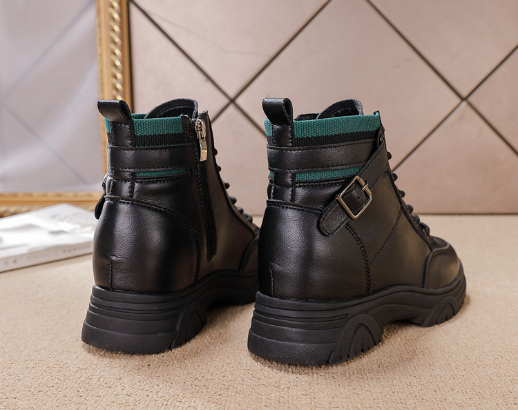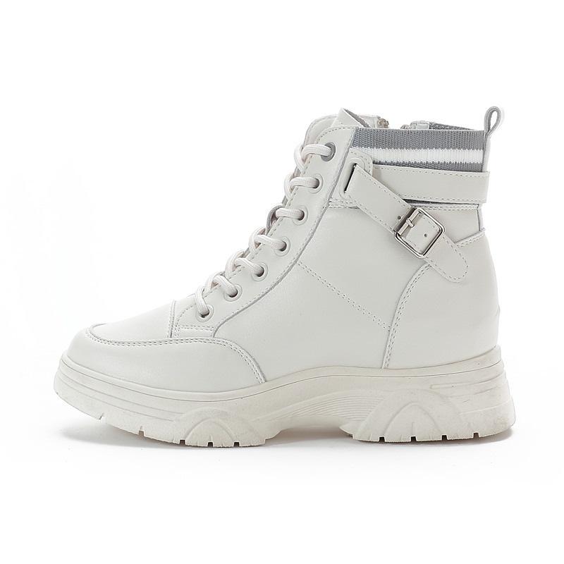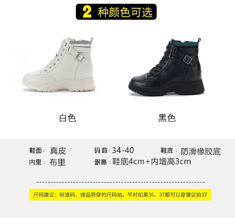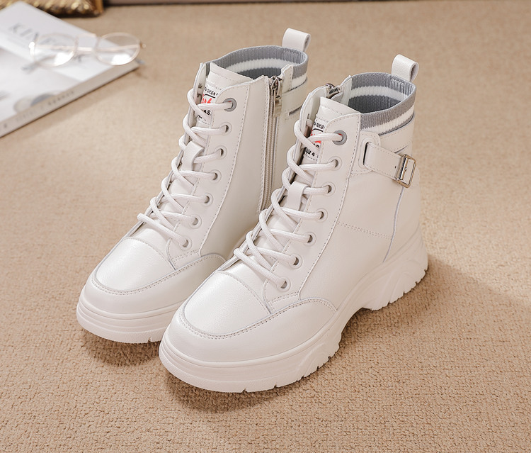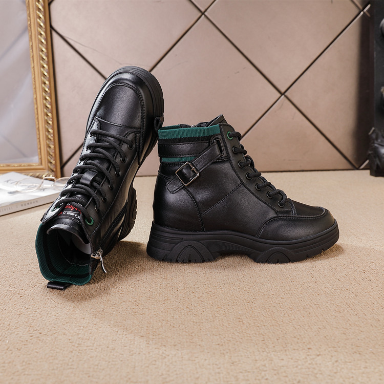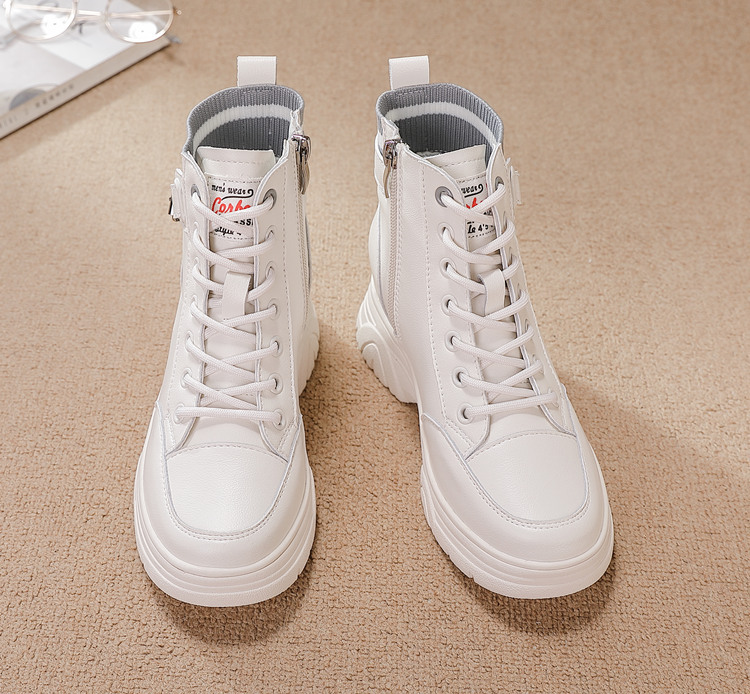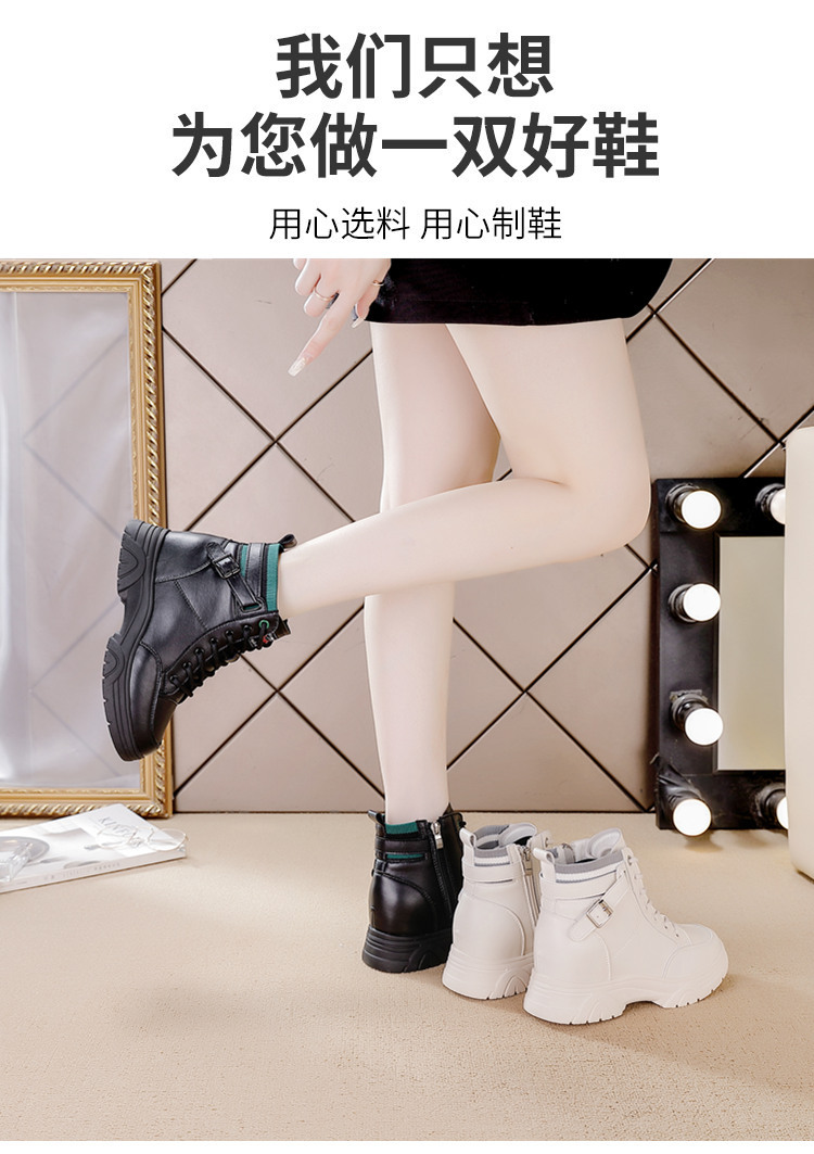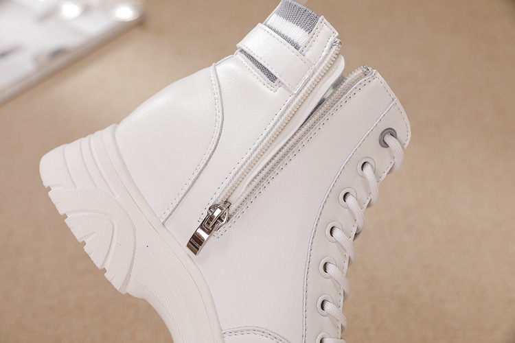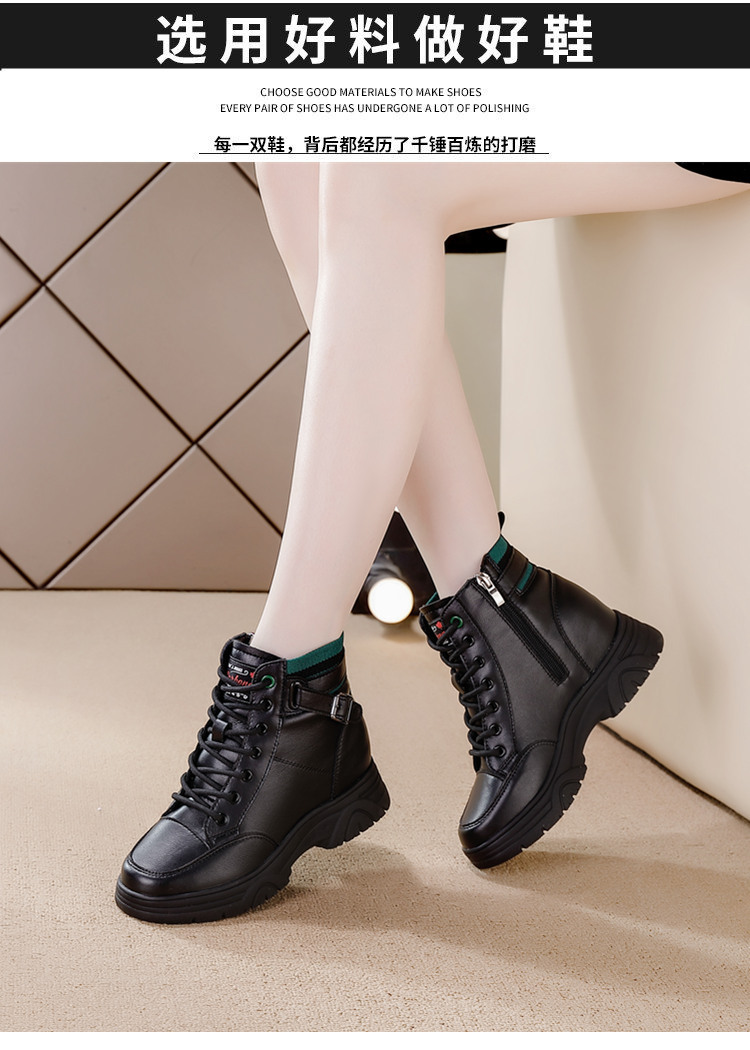 내부 높이 증가 마틴 부츠 여성의 새로운 캐주얼 신발 레이스 업 사이드 지퍼 싱글 신발 가을 겨울 짧은 부츠 여성용