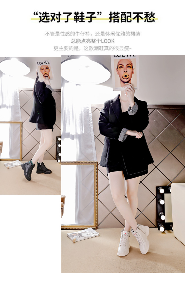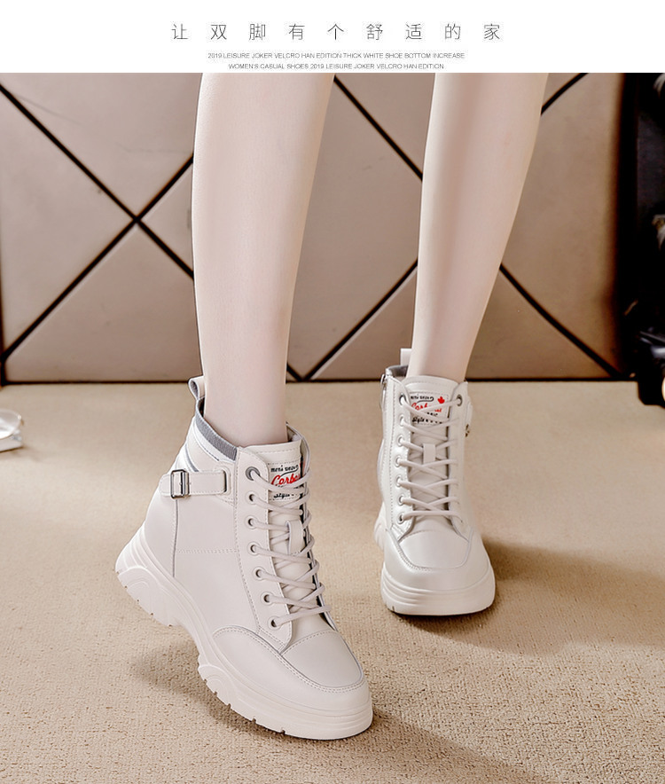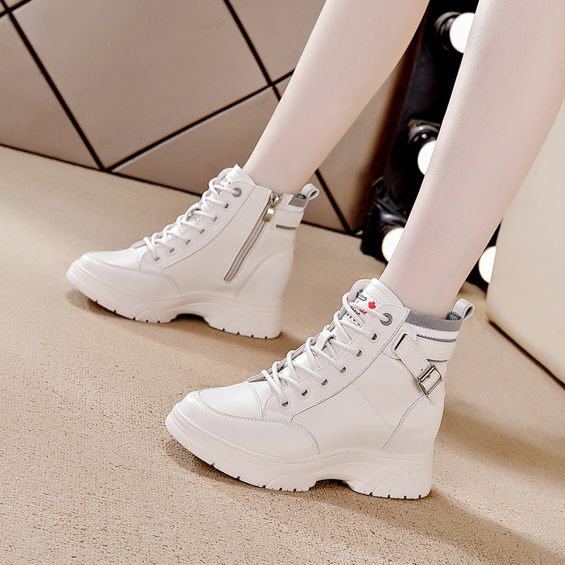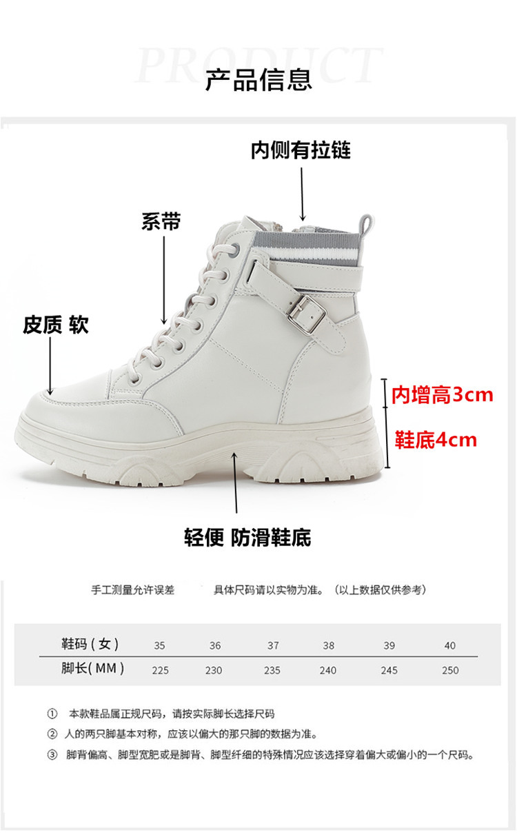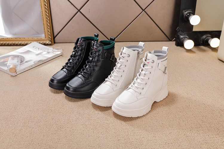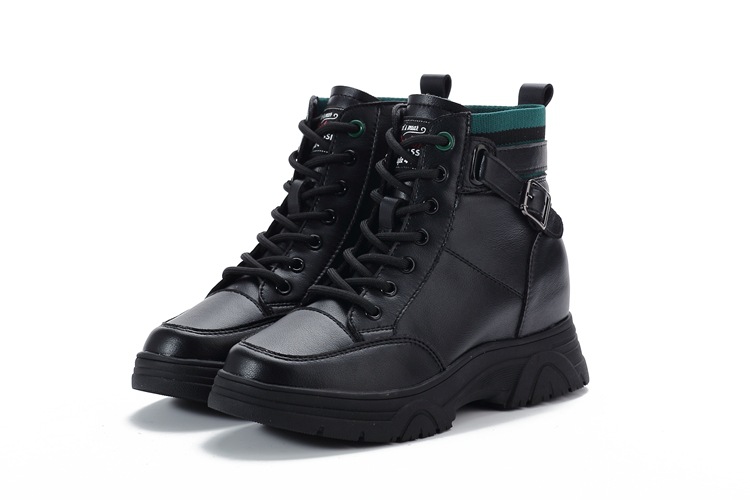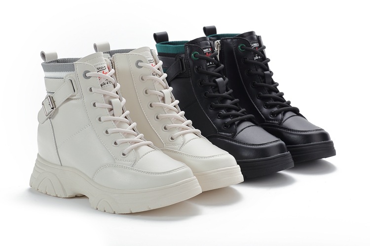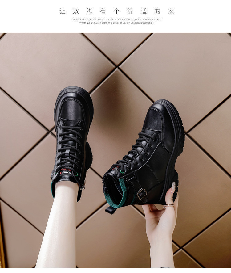 내부 높이 증가 마틴 부츠 여성의 새로운 캐주얼 신발 레이스 업 사이드 지퍼 싱글 신발 가을 겨울 짧은 부츠 여성용