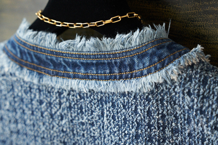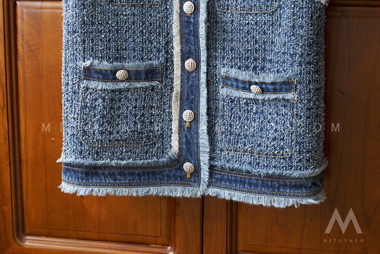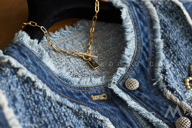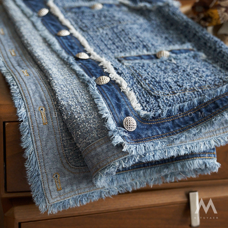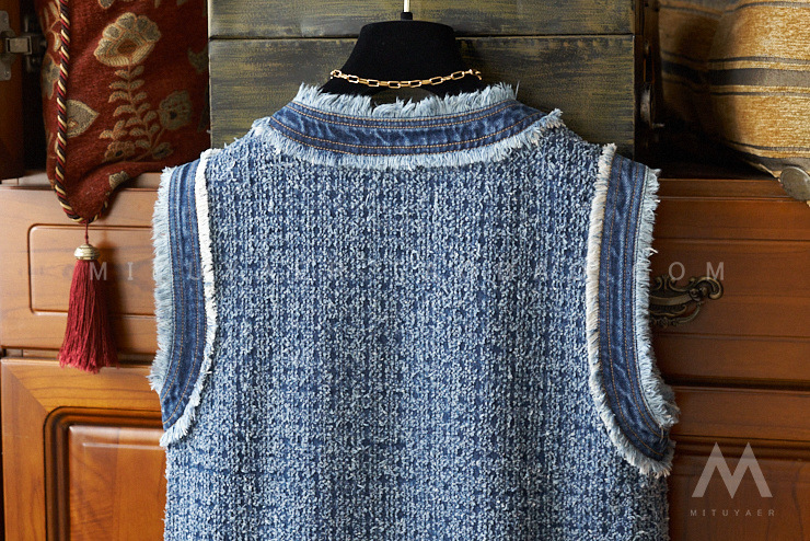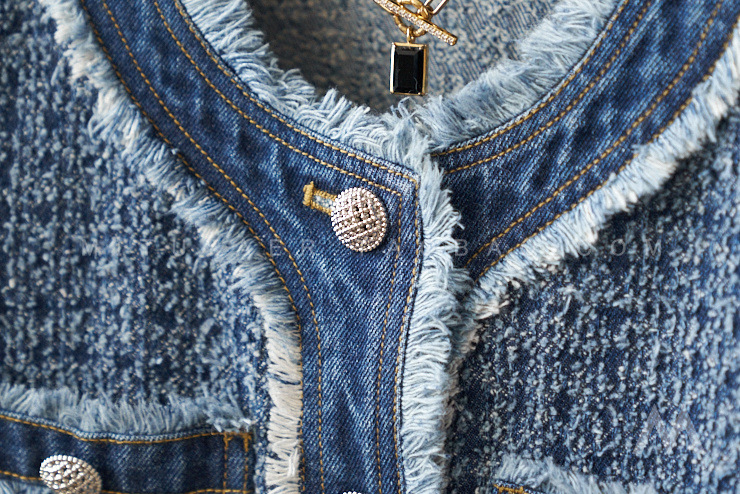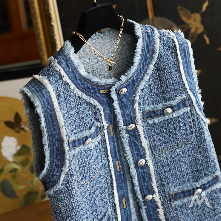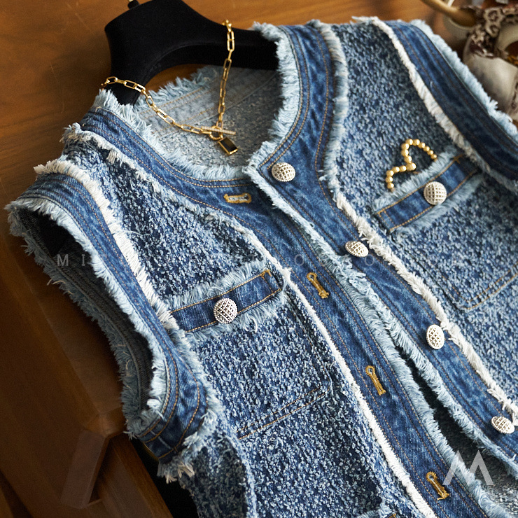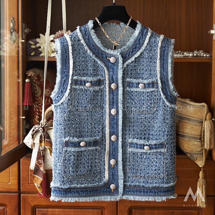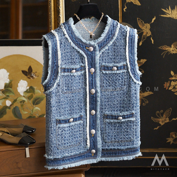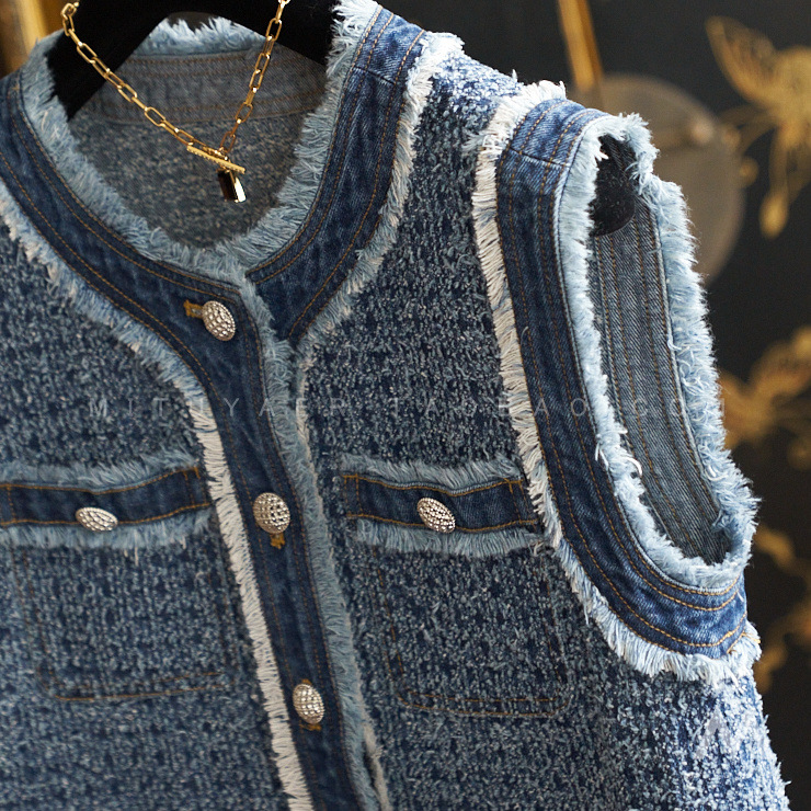 작은 샤넬 스타일 조끼 틈새 세련되고 섬세한 작은 샤넬 스타일 중공업 데님 조끼 여성 패션 여성 조끼스토어 가기